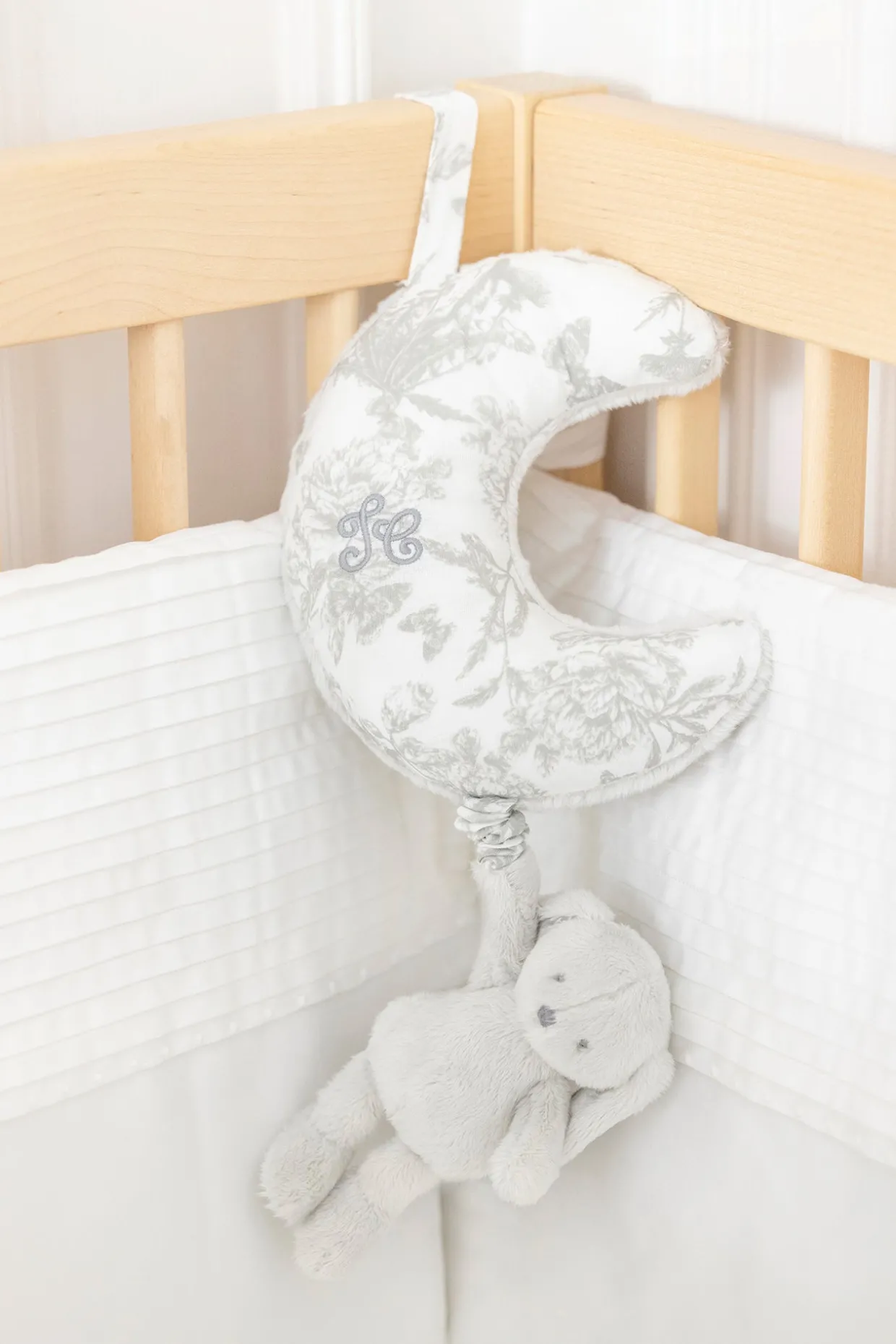 Augustin le lapin revient sous une nouvelle forme avec son imprimé inspiré de la Toile de Jouy grise dessiné par Tartine et Chocolat. Petit lapin câlin aux longues oreilles, facile à attraper pour bébé. Grâce à son visage rassurant et sa douceur, il illuminera le plus délicieux des rêves de bébé. Cet adorable peluche musicale bercera bébé et le plongera dans de beaux-rêves. Livrée dans une boite Toile de Jouy, un packaging spécifique de la ligne.