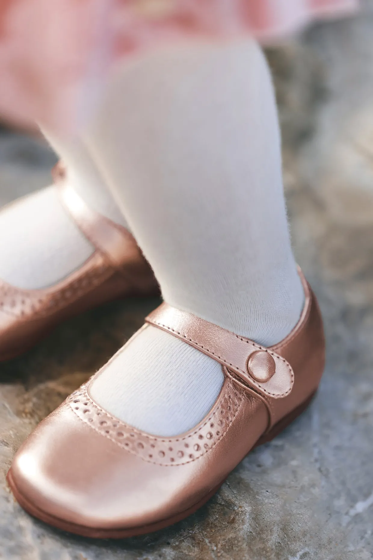 Ces babies pour fille, en cuir laminato, dévoilent un éclat subtil et raffiné. Leur finition métallisée apporte une touche lumineuse à ce modèle intemporel, parfait pour compléter avec élégance les tenues du quotidien comme celles des grandes occasions.