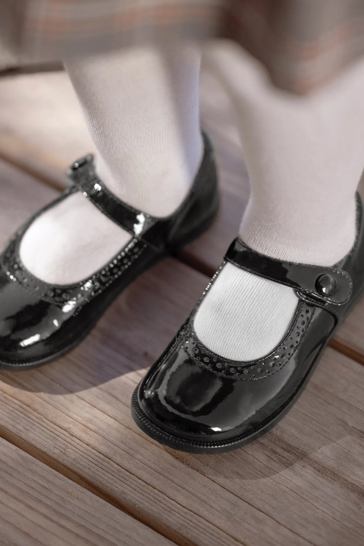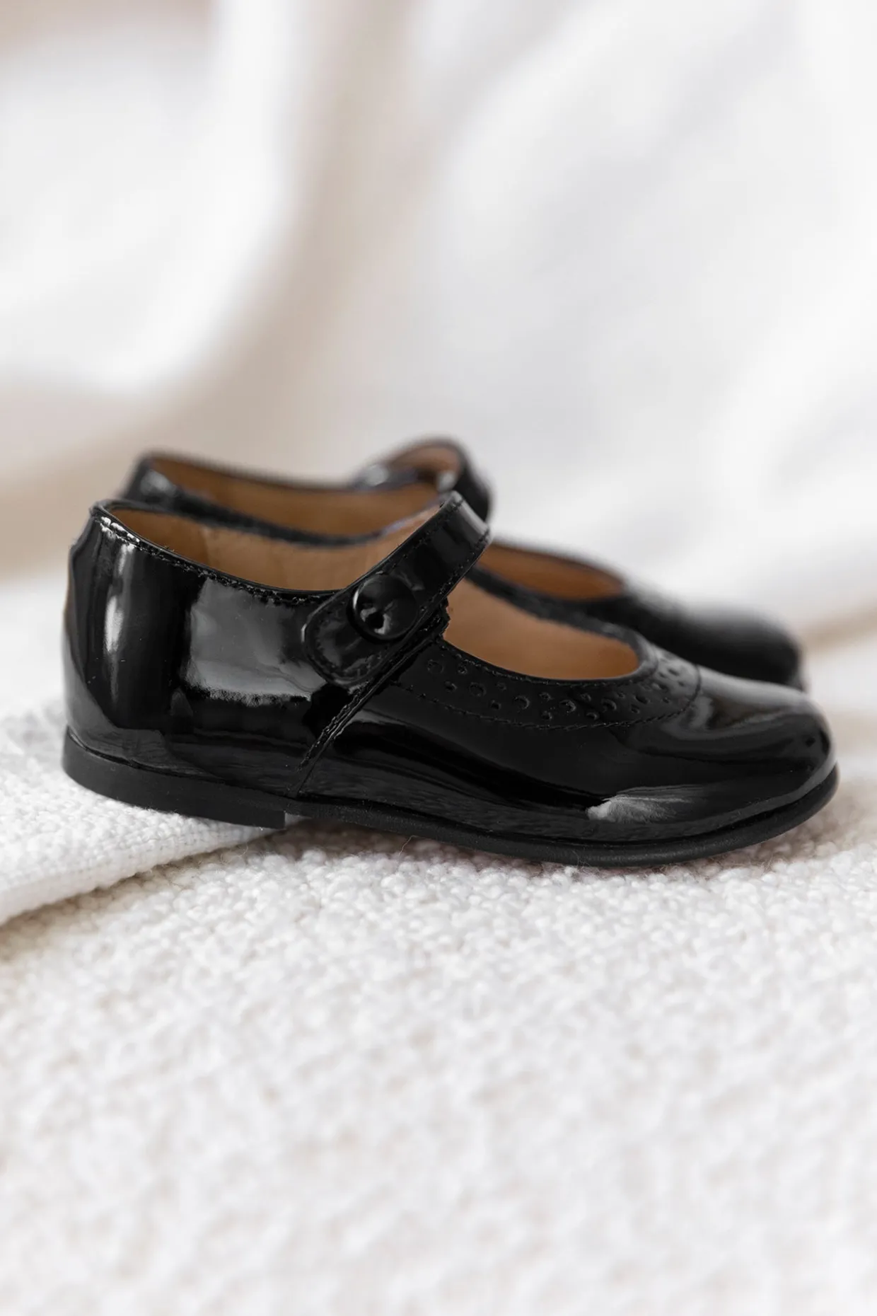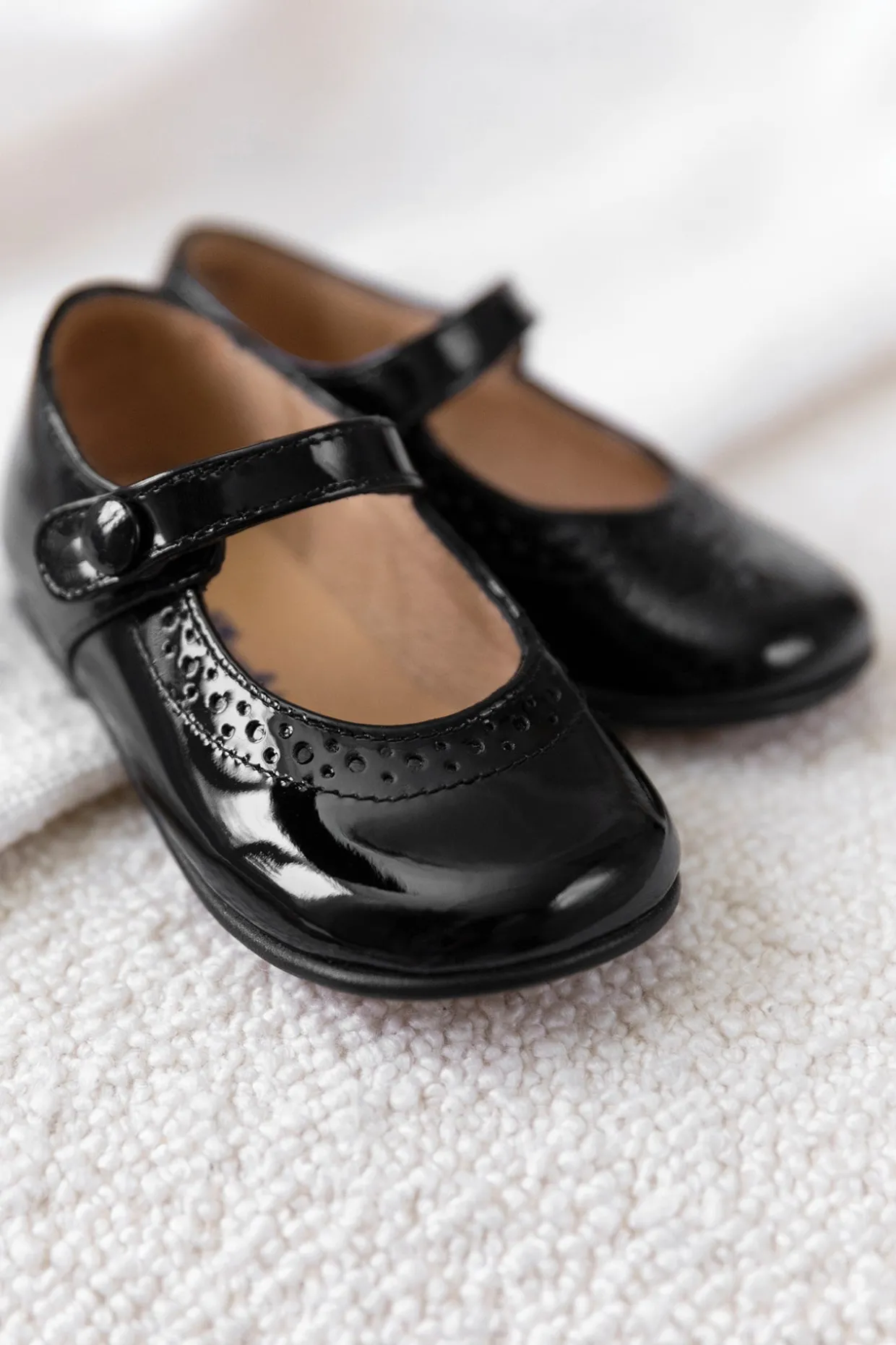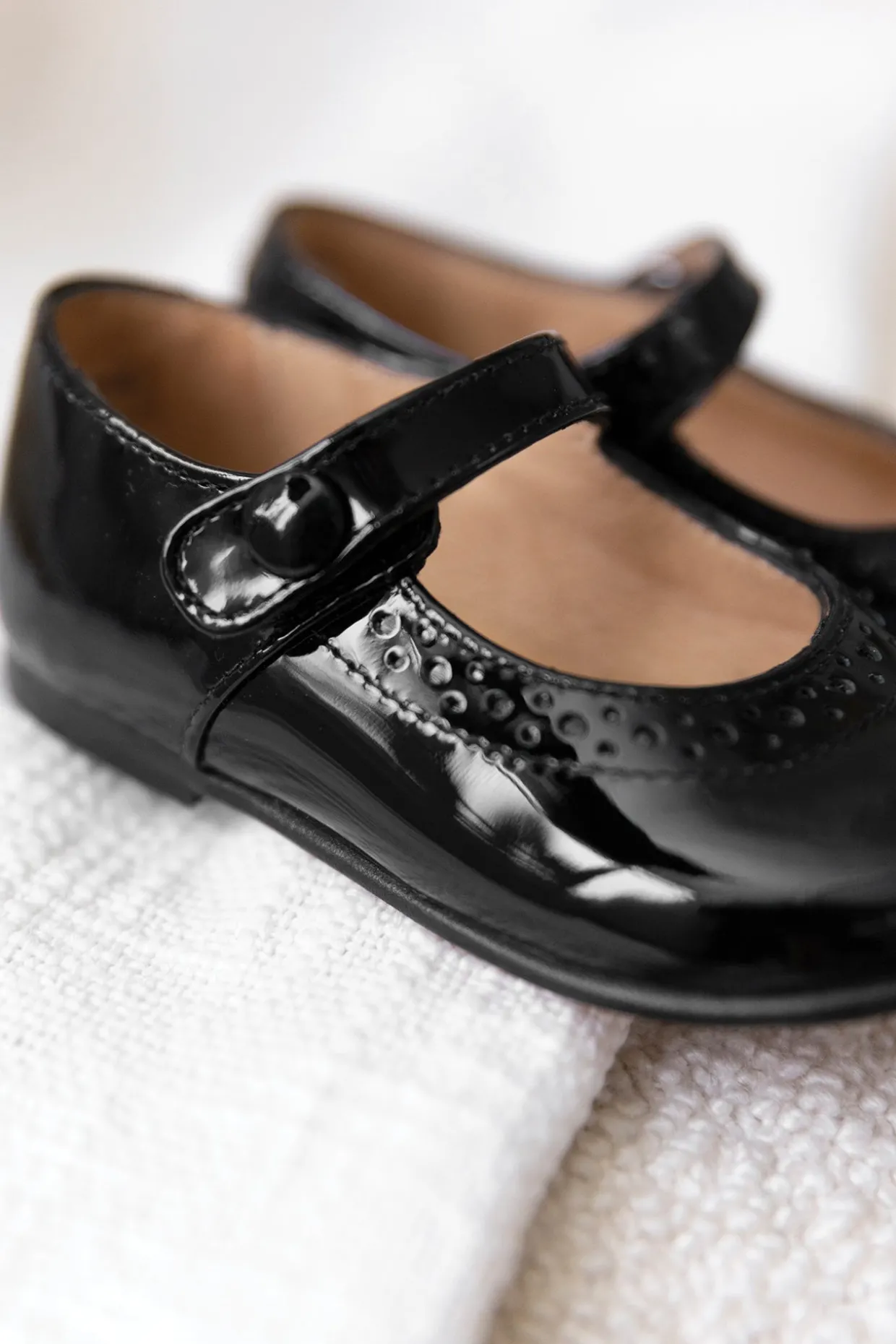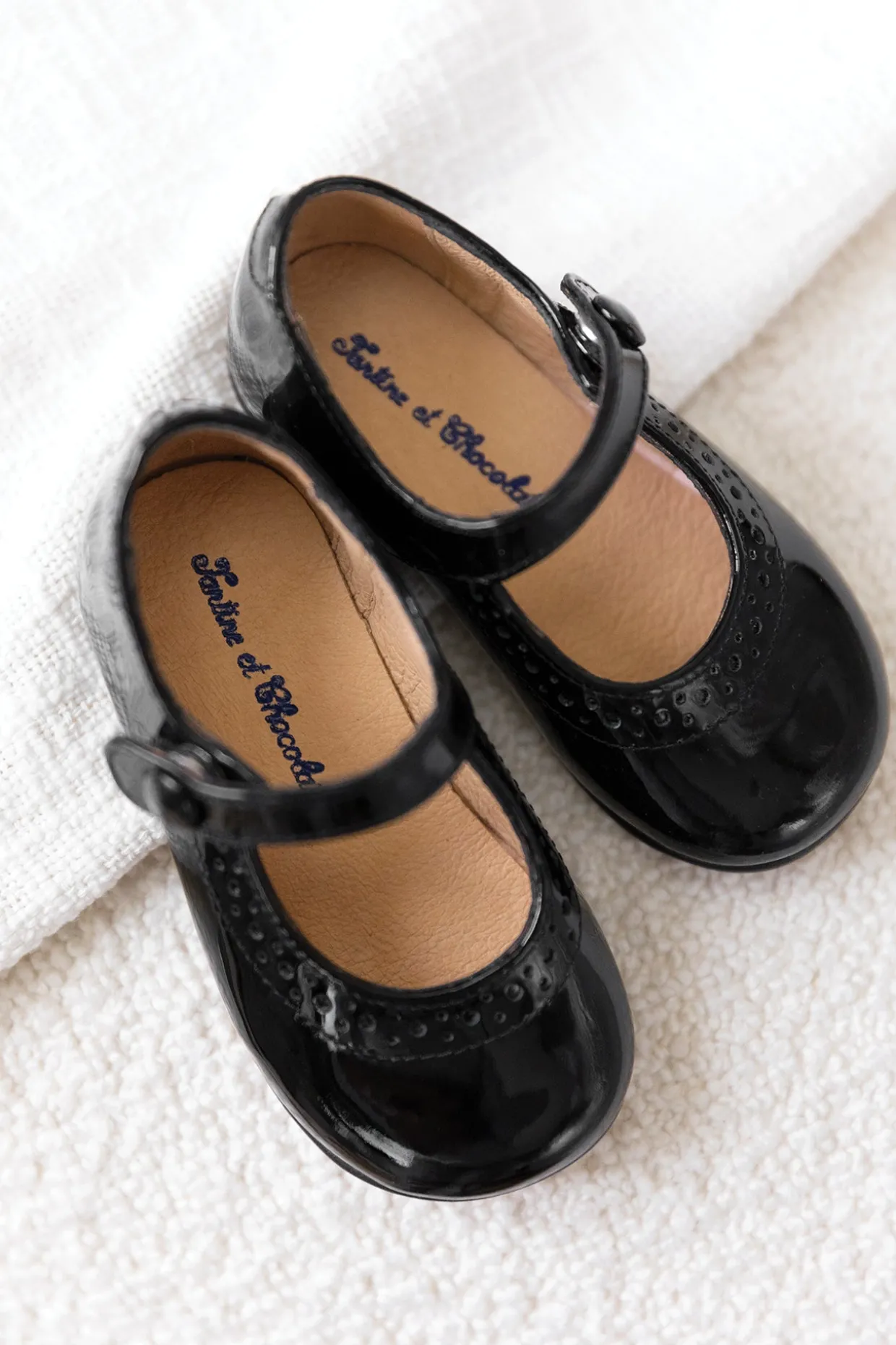 Ces babies pour enfants sont présentées dans une version en cuir vernis noir. Elles sont conçues avec des matériaux de qualité pour le bon développement du pied et l’apprentissage de la marche. Dotées d’un contrefort asymétrique, elles se chaussent facilement grâce à un bracelet pression monté sur élastique permettant un bon ajustement et un maintien de la cheville Ces jolies babies sont parfaites pour ajouter une touche de sophistication à n’importe quelle tenue de votre princesse.