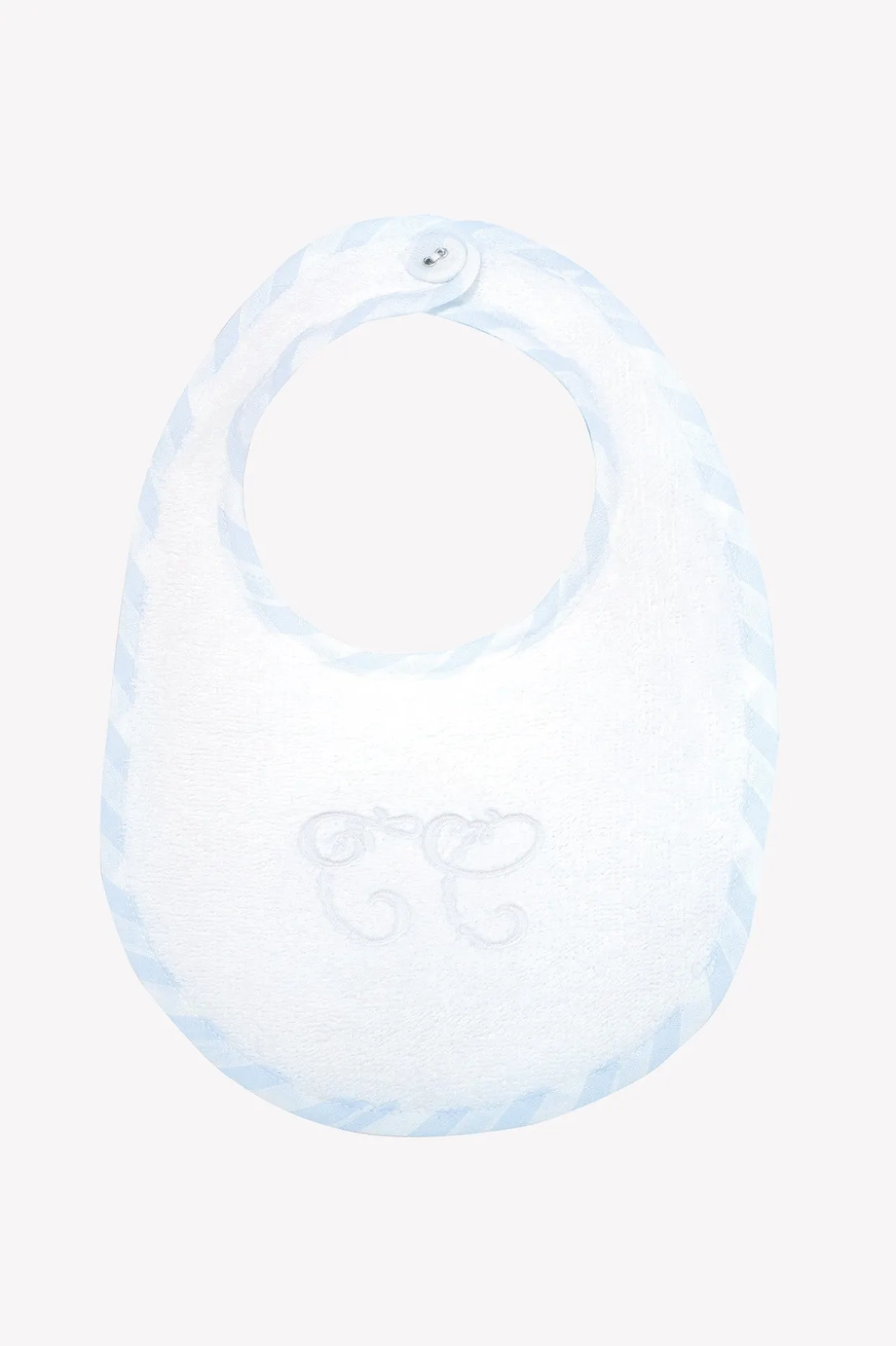 Bavoir Garda bleu ciel en popeline de coton, piqué fil à fil et éponge. Livré dans une pochette Garda rose pâle. Ouverture par un bouton pression. Dimensions : 15 x 20 cm. La ligne Garda : une ligne emblématique qui symbolise tout l’esprit Tartine et Chocolat. Des rayures chics et élégantes, associées aux couleurs pastel de l’enfance, un écusson finement brodé, des tissus doux et tendres. Fabriqué au Portugal.