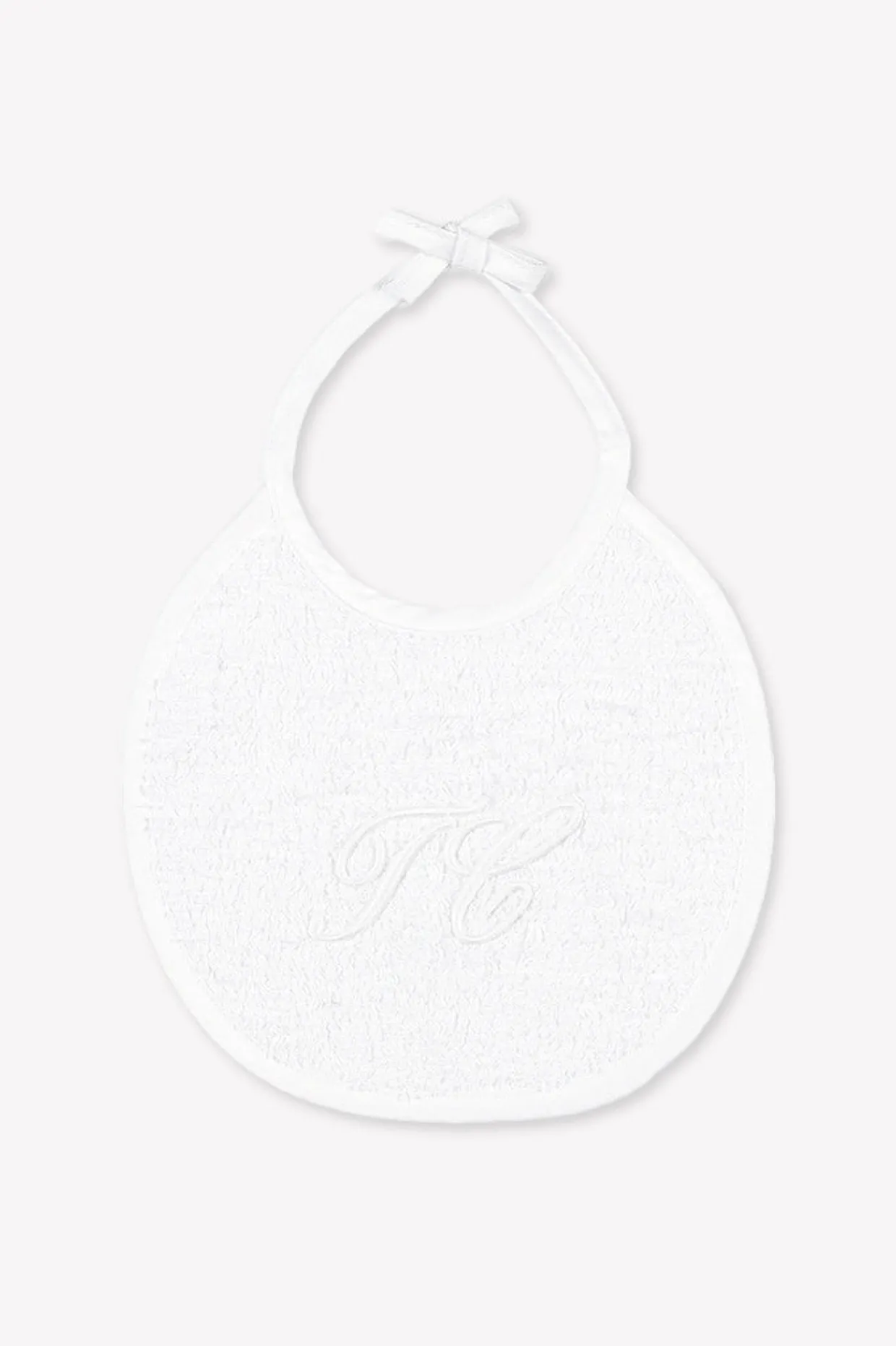 Bavoir Monogramme blanc en popeline de coton, piqué et fil à fil. Ouverture par un noeud. Dimensions : 15 x 20 cm La ligne Monogramme : Etoiles de nacre, plis religieux et broderies réhaussent avec délicatesse l’élégance et la pureté de cette ligne. Discret et chic, cette ligne pour fille ou garçon est un véritable cocon de blancheur. Composition : 100% coton Fabriqué au Portugal