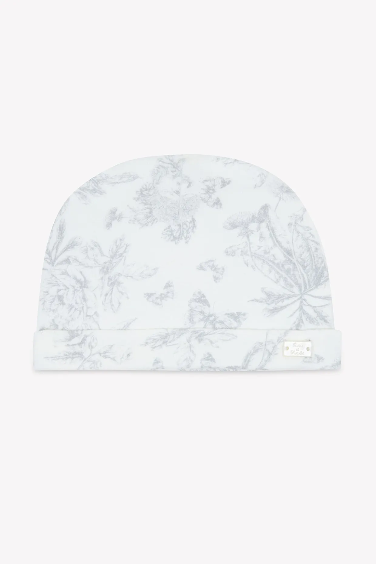 Bonnet en jersey imprimé inspiration Toile de Jouy gris dessiné par Tartine et Chocolat, assorti au pyjama du thème Toile de Jouy. T