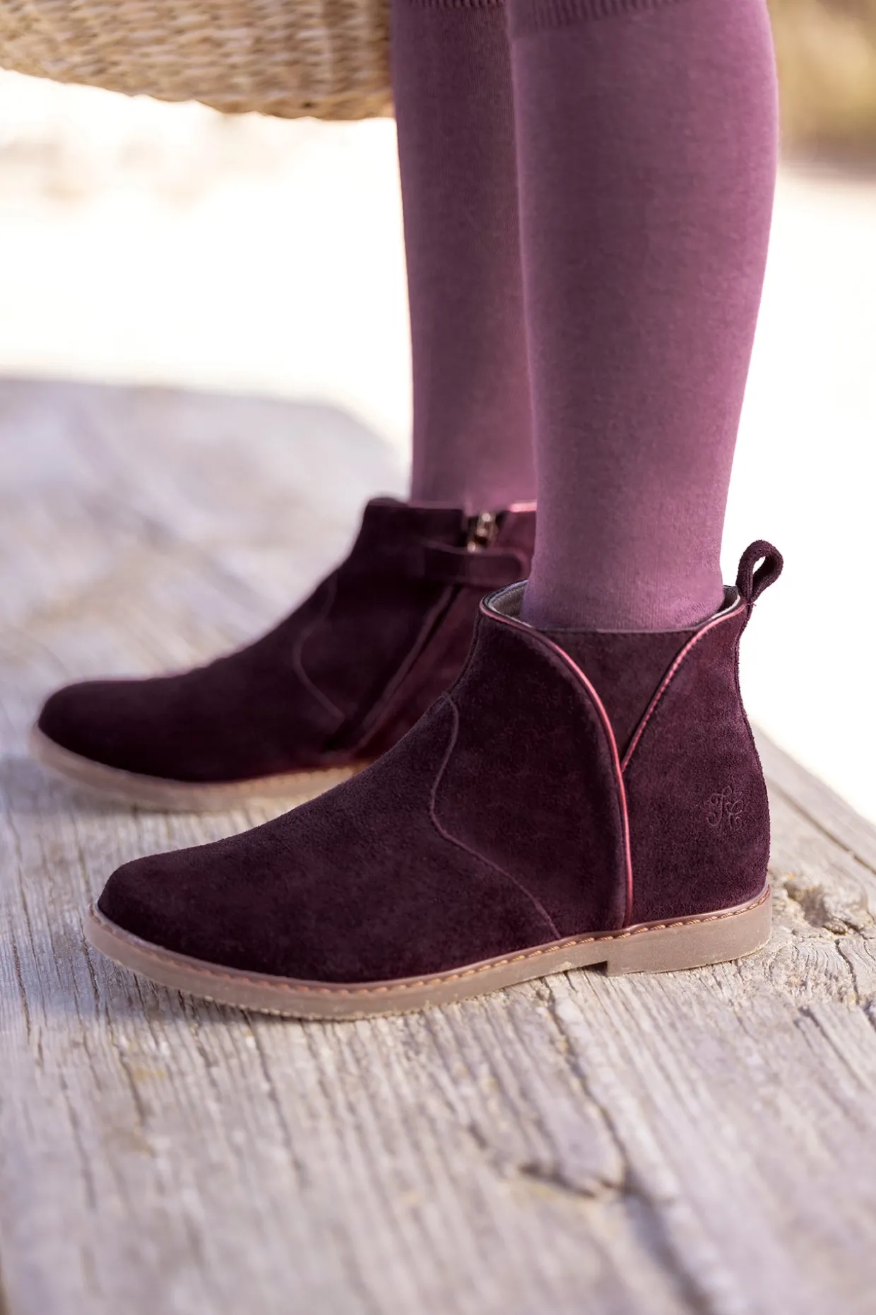 Ces bottines pour enfants sont présentées dans une version en cuir velours bordeaux. Elles sont conçues avec des matériaux de qualité pour le bon développement du pied et l’apprentissage de la marche. Elles se chaussent facilement grâce à un zip intérieur auto bloquant et un élastique de souplesse permettant un bon ajustement et un maintien de la cheville. Ces élégantes bottines seront parfaites pour ajouter une touche de sophistication aux tenues d’automne et d’hiver.