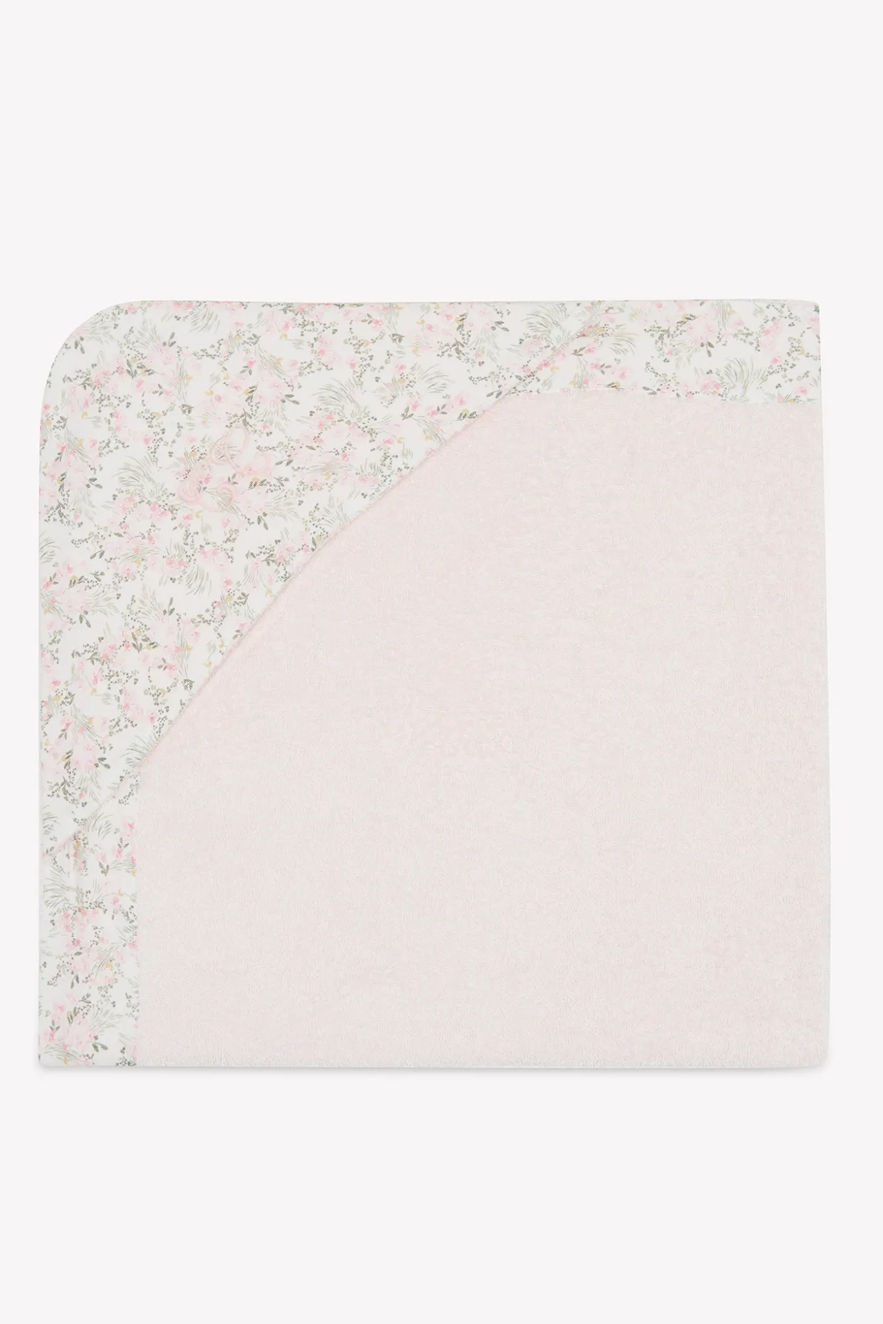 Cape de bain rose pâle imprimé fleuri inspiré d’un Jardin Hivernal. Confectionnée en coton lange et éponge, elle allie douceur, absorption et raffinement pour les moments de tendresse après le bain. Dimensions : 70 x 70 cm.