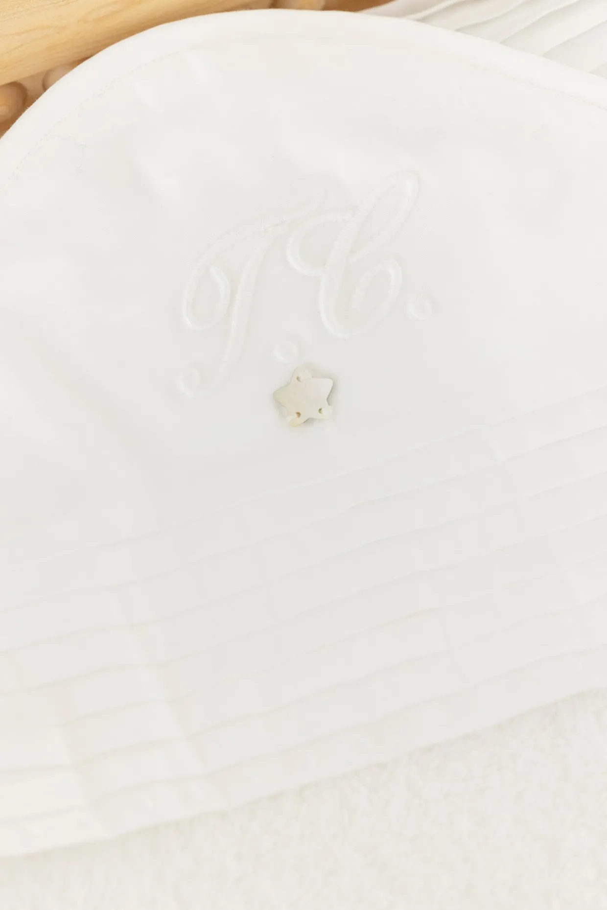La ligne Monogramme : Etoiles effet nacre, plis religieux et broderies réhaussent avec délicatesse l’élégance et la pureté de cette ligne. Discret et chic, cette ligne pour fille ou garçon est un véritable cocon de blancheur.