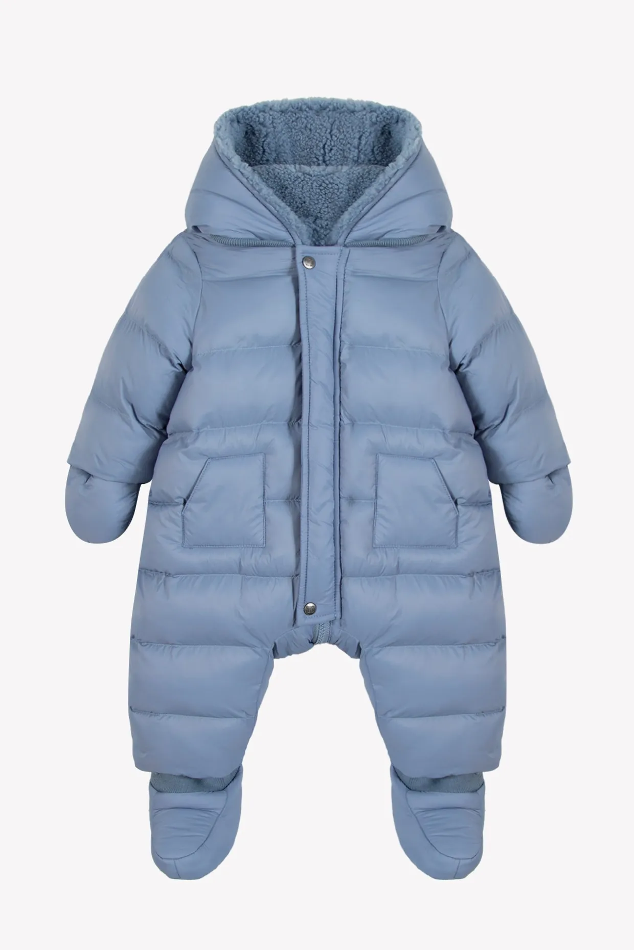 Ce pilote bleu grisé pour bébé garçon allie praticité et douceur avec sa version réversible. Le côté déperlant protège des petits temps humides, tandis que l’intérieur en imitation fourrure assure un confort douillet. Gants et chaussons inclus complètent cet indispensable pensé pour les premiers froids. Les chaussons ne sont pas inclus pour les tailles 18M et 2A.