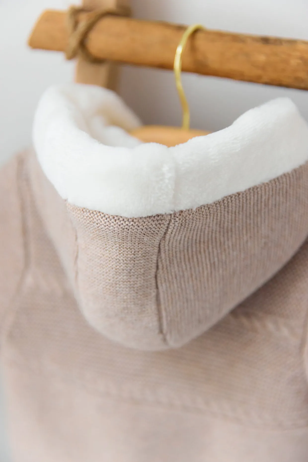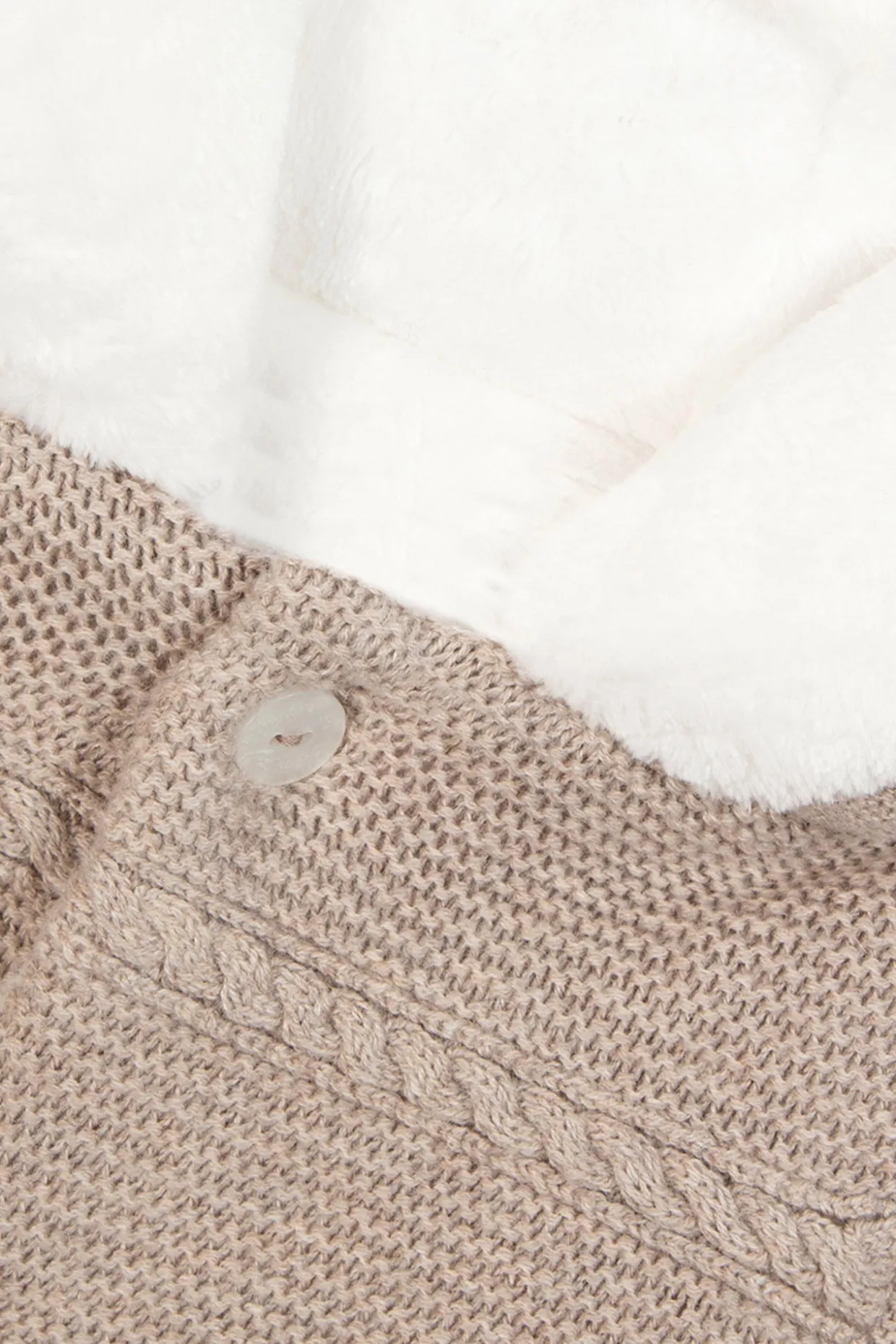 Composition : 1ère ouate:100% Polyester Imitation fourrure:100% Polyester Tricot:70% Coton 25% Laine 5% Cachemire