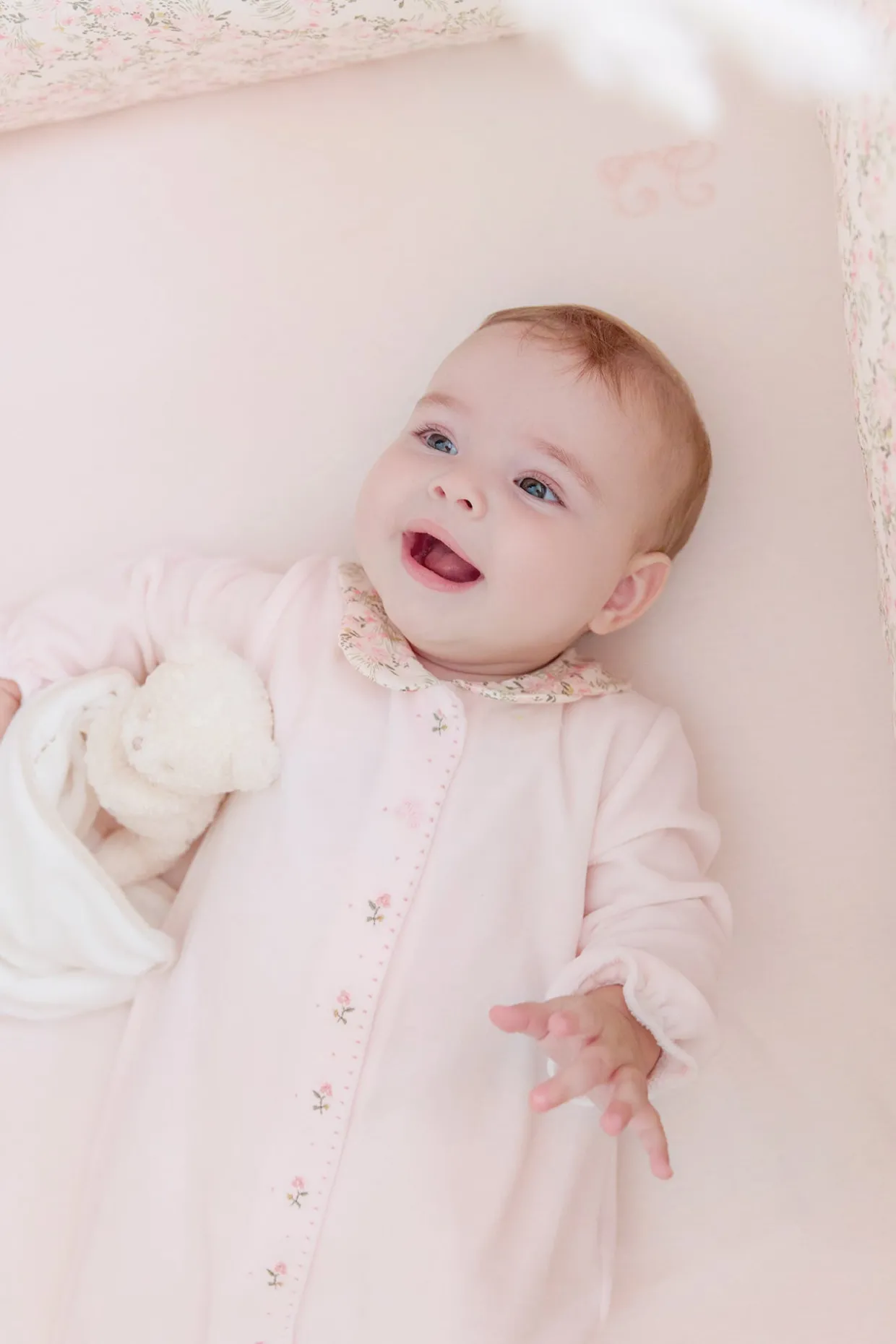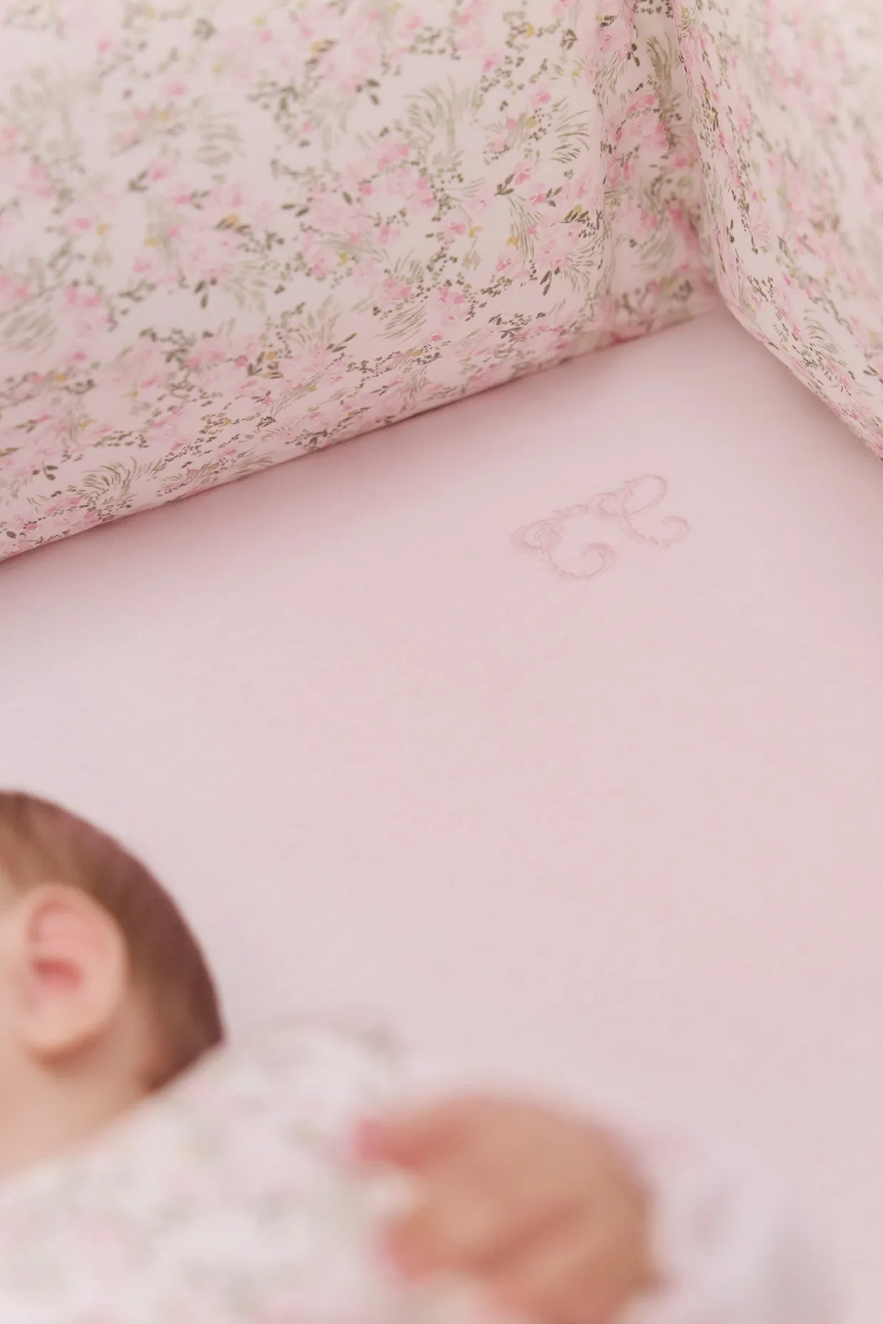 Drap housse en coton lange imprimé fleuri inspiration Jardin Hivernal. Dimensions : 70 x 140 cm.