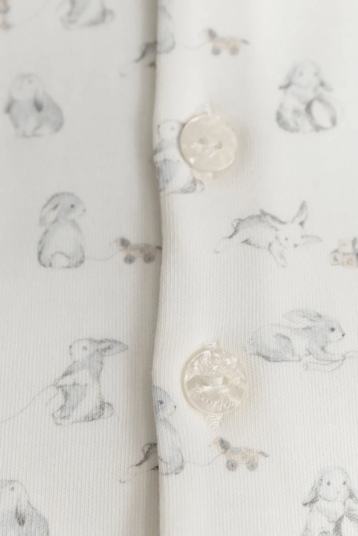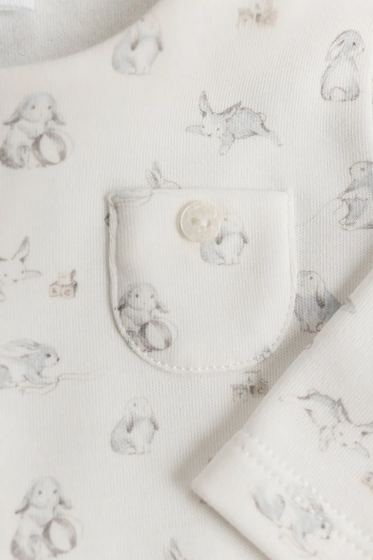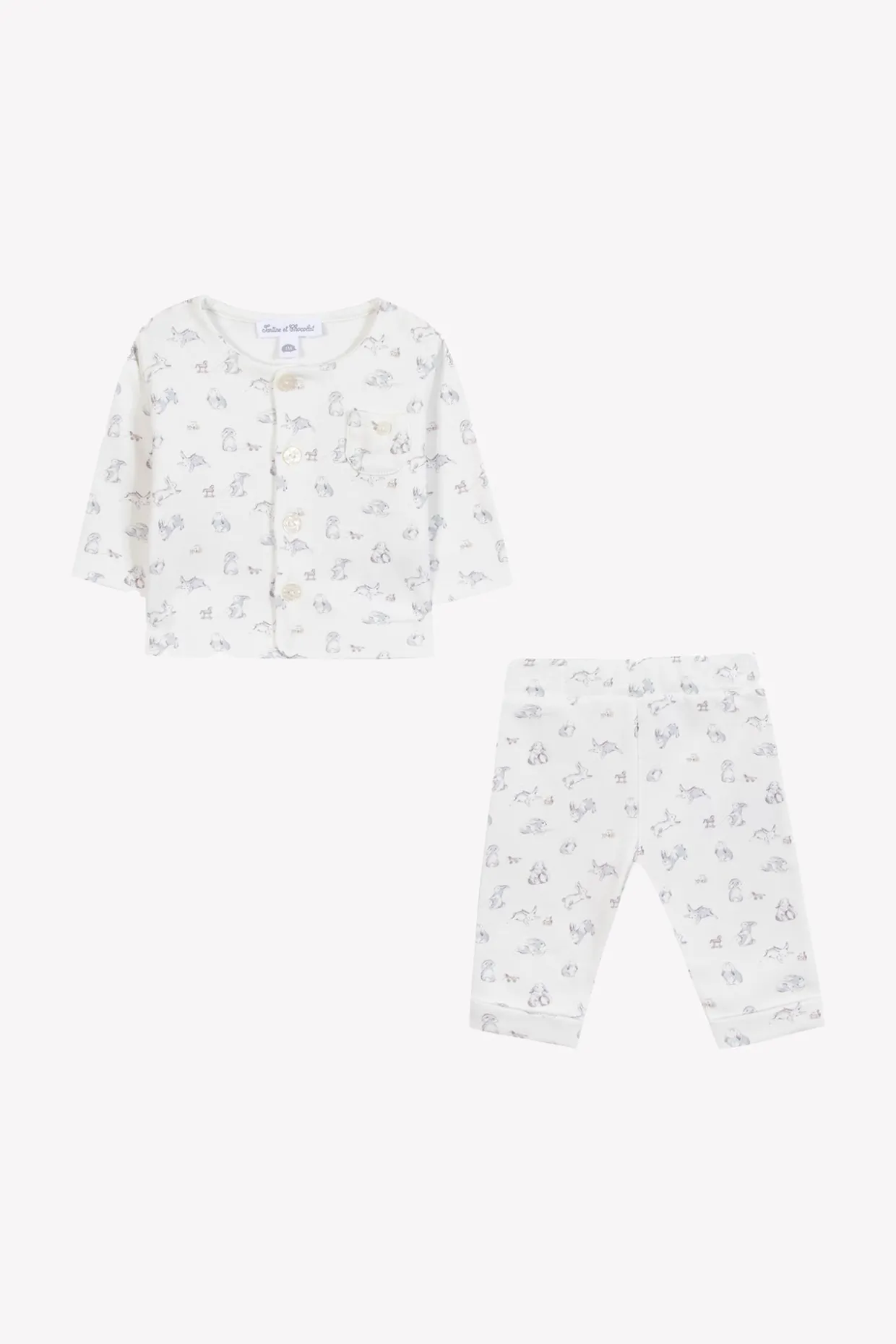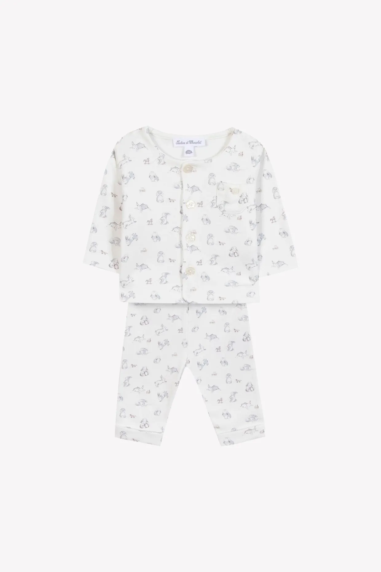 Cet ensemble naissance garçon en écru se pare d’un imprimé lapin délicat. Le gilet, orné d’un col rond, se ferme par de jolis boutons et se complète d’une poche subtile. Le pantalon assorti accompagne ce duo tout en confort, enveloppant bébé d’une chaleur tendre. Un ensemble raffiné, pensé pour les premiers moments avec élégance.