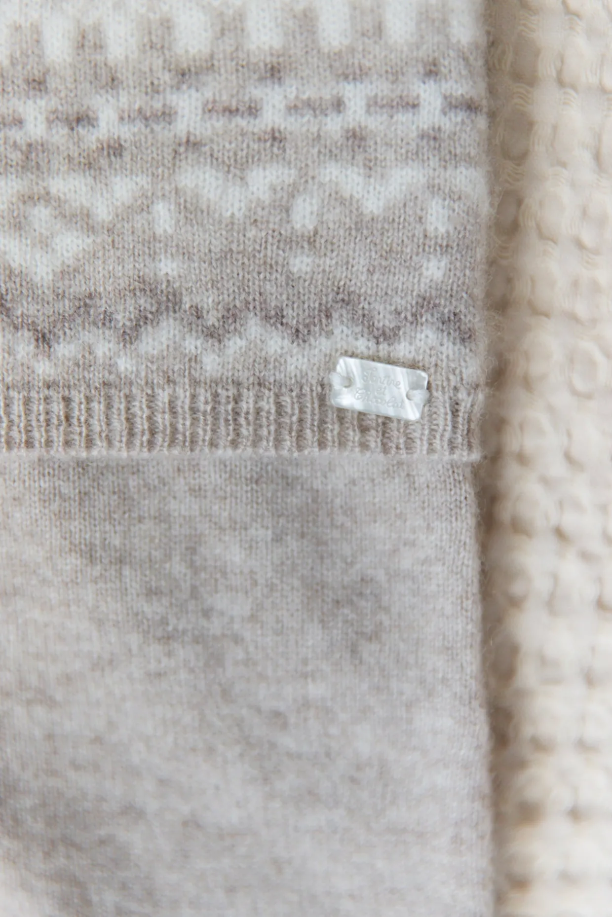 Pour les premiers instants de bébé, cet ensemble naissance garçon en greige chiné dévoile un motif jacquard délicat sur le haut et le pantalon assorti. Confectionné en laine et cachemire, il enveloppe bébé d’une chaleur douce et confortable, parfaite pour les journées d’hiver. Un duo raffiné, qui allie élégance et bien-être.