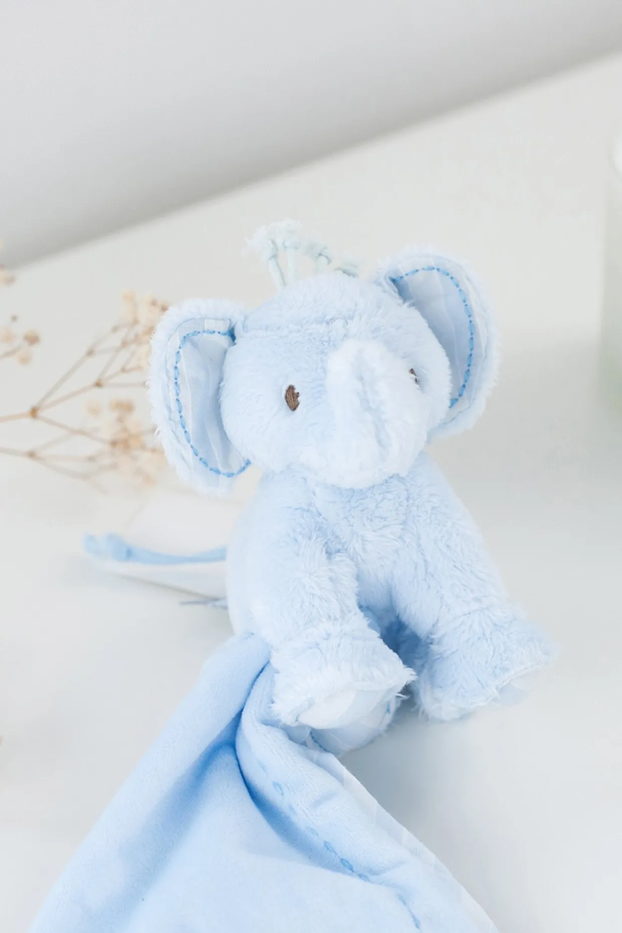 Peluche Ferdinand, l’éléphant, en imitation fourrure et suédine accrochée à un carré en micro velours. Livré dans une jolie boîte Tartine et Chocolat. Ferdinand l’éléphant : Un éléphant amusant avec sa trompe de travers, ses poils sur la tête et sa queue en suédine. Merveilleux compagnon de jeux des enfants mais aussi très rassurant grâce à sa trompe que les enfants attrapent facilement. Dimensions : Peluche de 12 cm (mesure prise de haut en bas) et carré de 25×25 cm