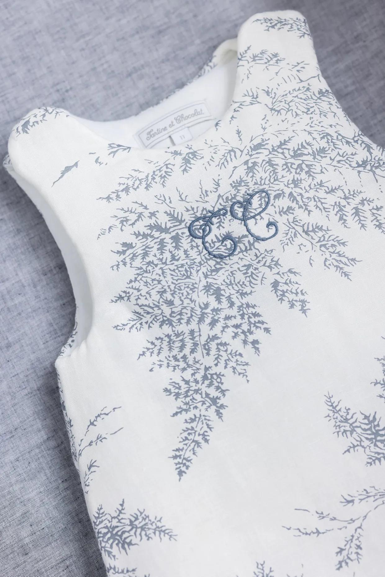 Gigoteuse imprimé Feuillage en coton et lin. Doublure en jersey. Dimensions : 70 cm (de 3 à 9 mois). La ligne Feuillage : une ligne coup de cœur chez Tartine et Chocolat, Feuillage allie l’intemporalité et la sobriété du chambray avec la fraicheur et la modernité de l’imprimé. Nous préconisons une utilisation de nos gigoteuses dans une température de chambre entre 19 et 22 degrés. Gigoteuse TOG 2. Fabriqué au Portugal.