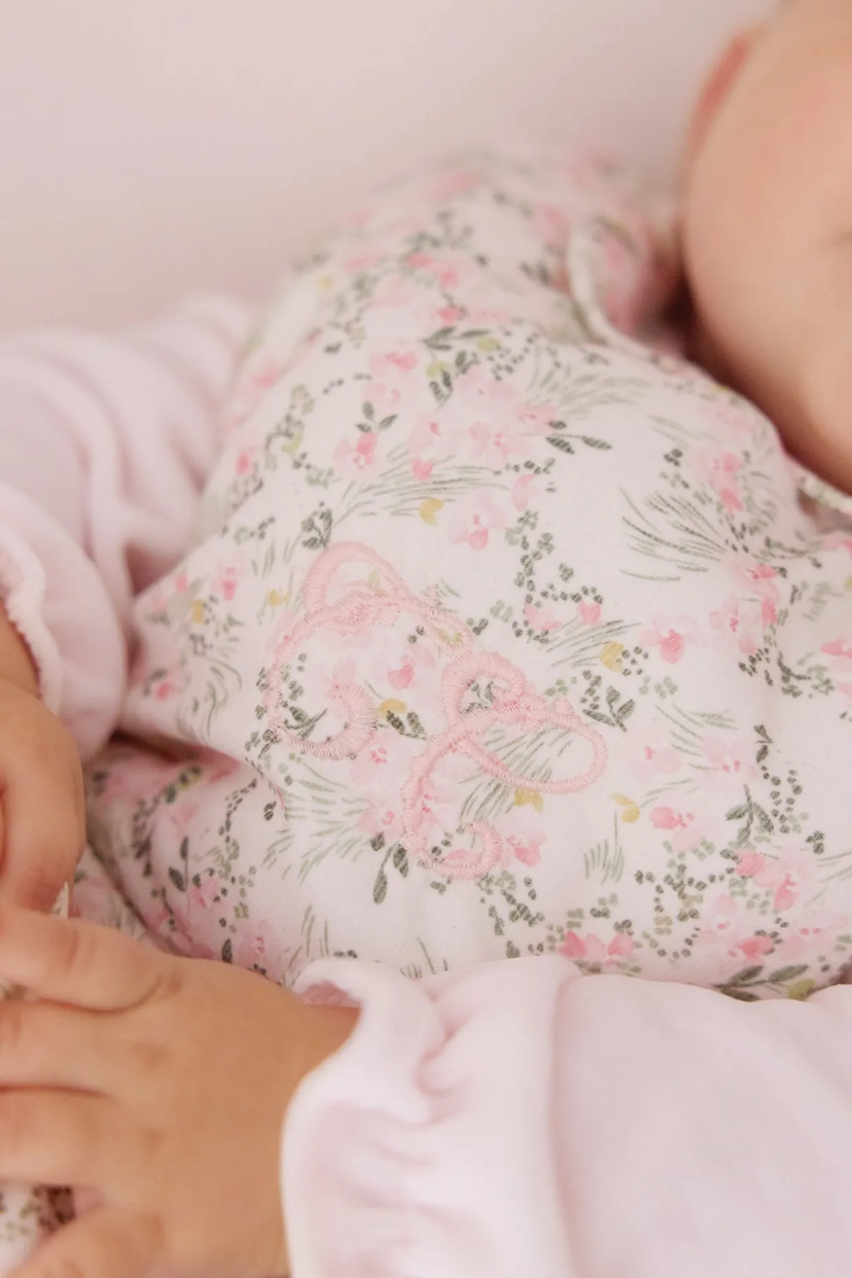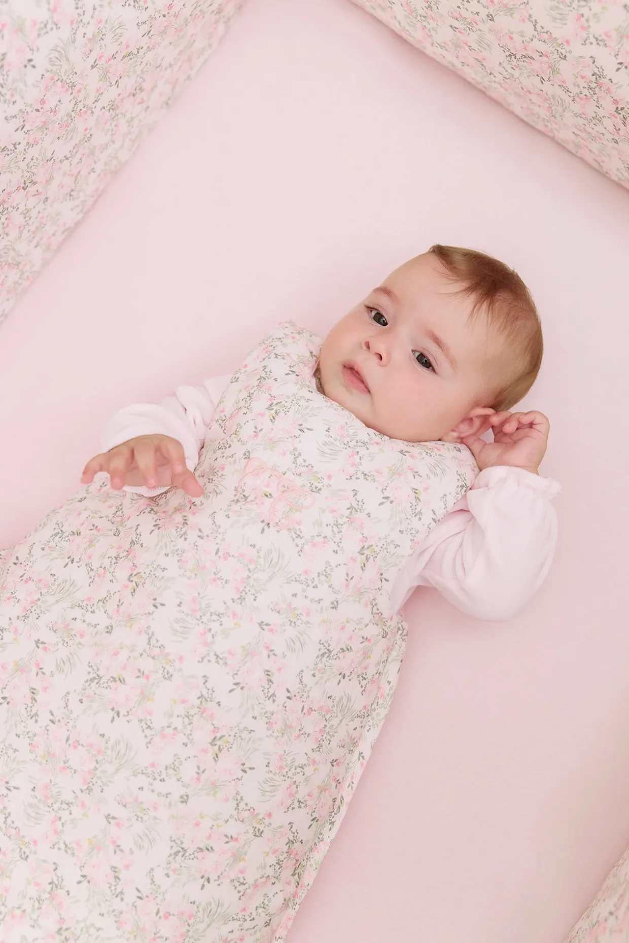 Gigoteuse imprimé fleuri inspiration Jardin Hivernal en coton lange. Dimensions : 70 cm (de 3 à 9 mois). Nous préconisons une utilisation de nos gigoteuses dans une température de chambre entre 19 et 22 degrés.Gigoteuse TOG 2