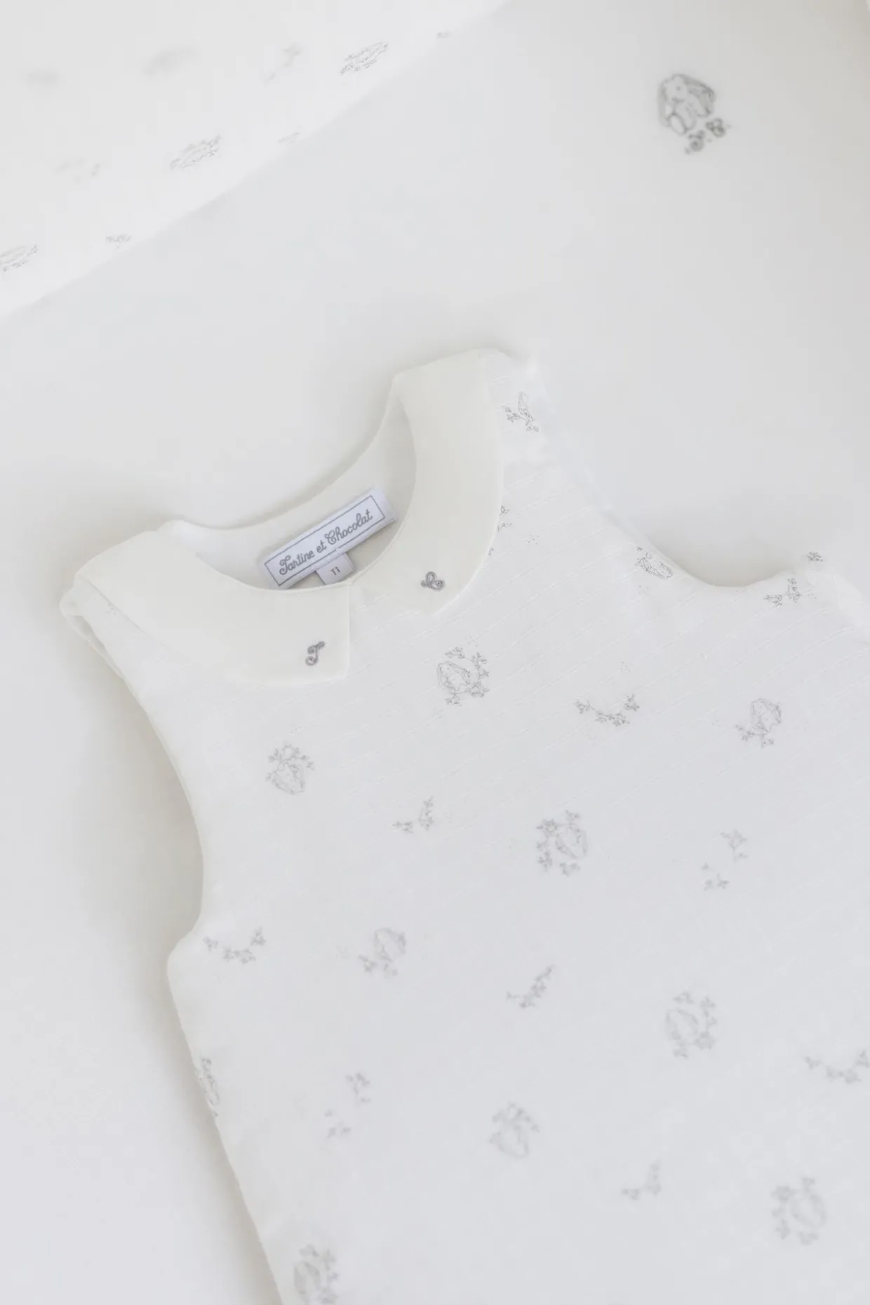 La gigoteuse Petit Augustin nacre est en popeline de coton. On craque pour sa matière douce et sa jolie broderie TC. Tartine et Chocolat imagine une nouvelle ligne de puériculture, mixte et délicate. Ce nouvel imprimé reprend le personnage emblématique de la maison, Augustin le lapin, qui se promène sur un carreau en voile de coton, tout en élégance. Pleine de douceur et de subtilité, la ligne Petit Augustin deviendra la favorite de bébé. T1 : Longueur 70 cm, de 3 à 9 moisGigoteuse TOG 2