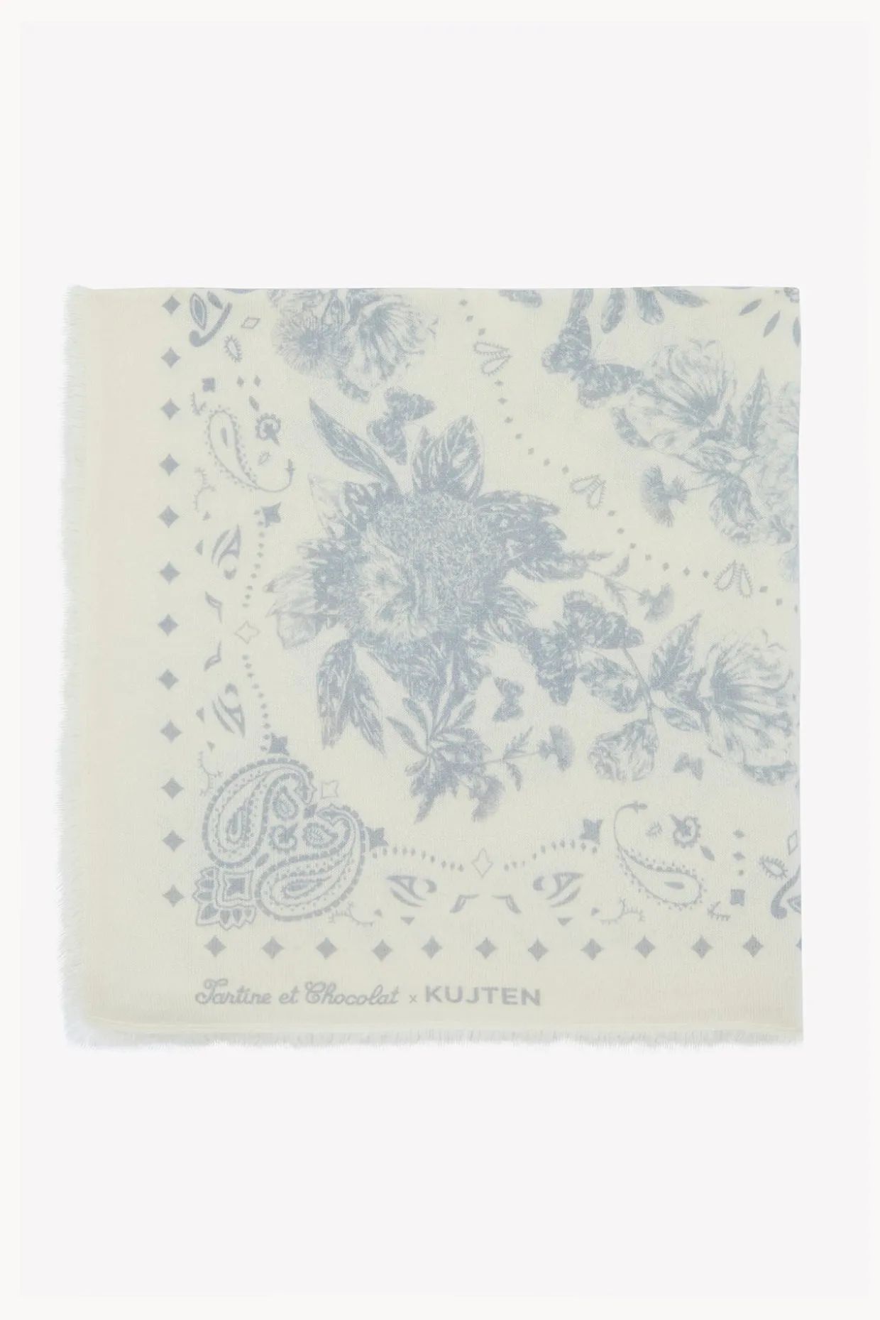 Une collaboration qui allie douceur et élégance ! Tartine et Chocolat s’associe à Kujten pour une collection en cachemire d’exception. Ce grand foulard en cachemire gris clair, orné d’un imprimé délicat, s’adapte à toutes vos envies. Sa teinte élégante et sa matière enveloppante en font un accessoire idéal pour rester bien au chaud avec une touche de sophistication.