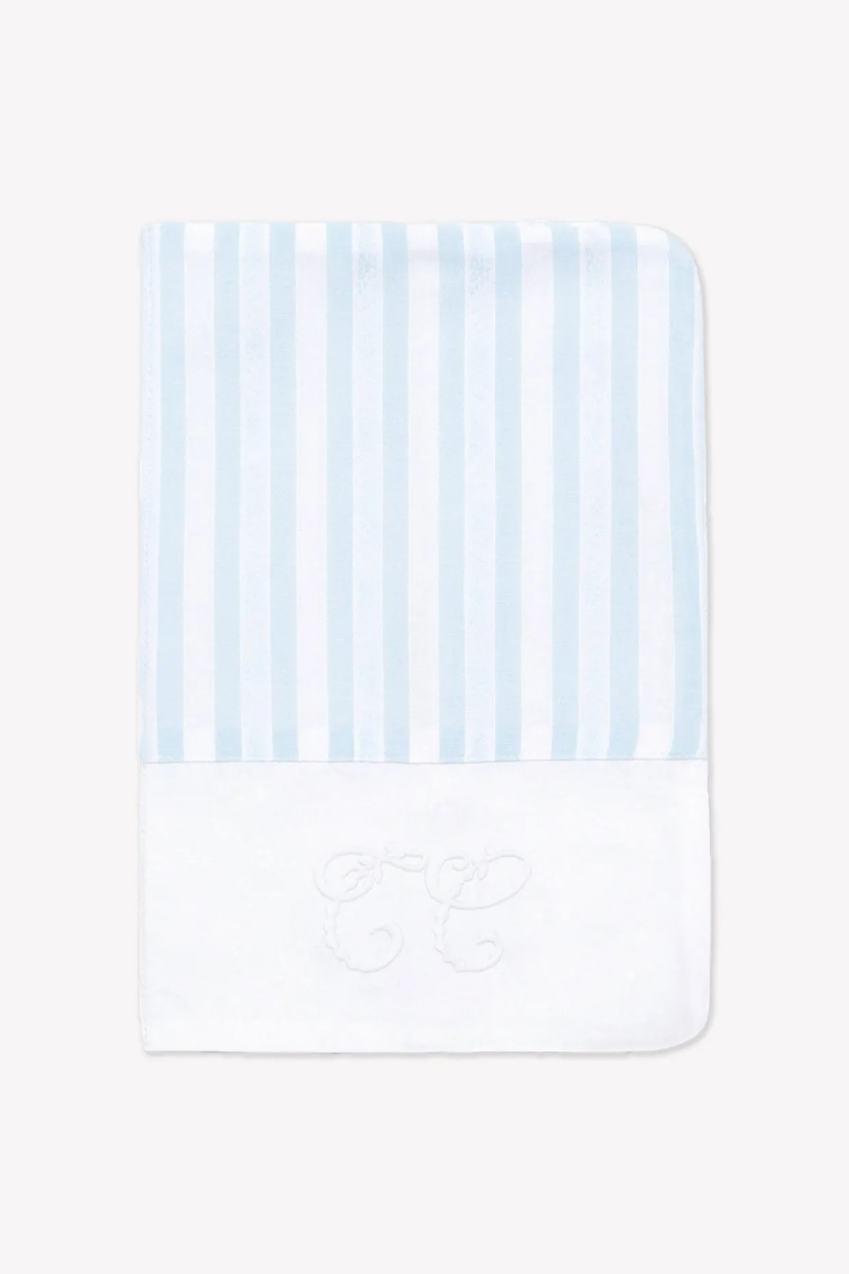 Housse de carnet de santé Garda bleu ciel en coton. Dimensions : 16 x 23 cm. La ligne Garda : une ligne emblématique qui symbolise tout l’esprit Tartine et Chocolat. Des rayures chics et élégantes, associées aux couleurs pastel de l’enfance, un écusson finement brodé, des tissus doux et tendres. Fabriqué au Portugal.