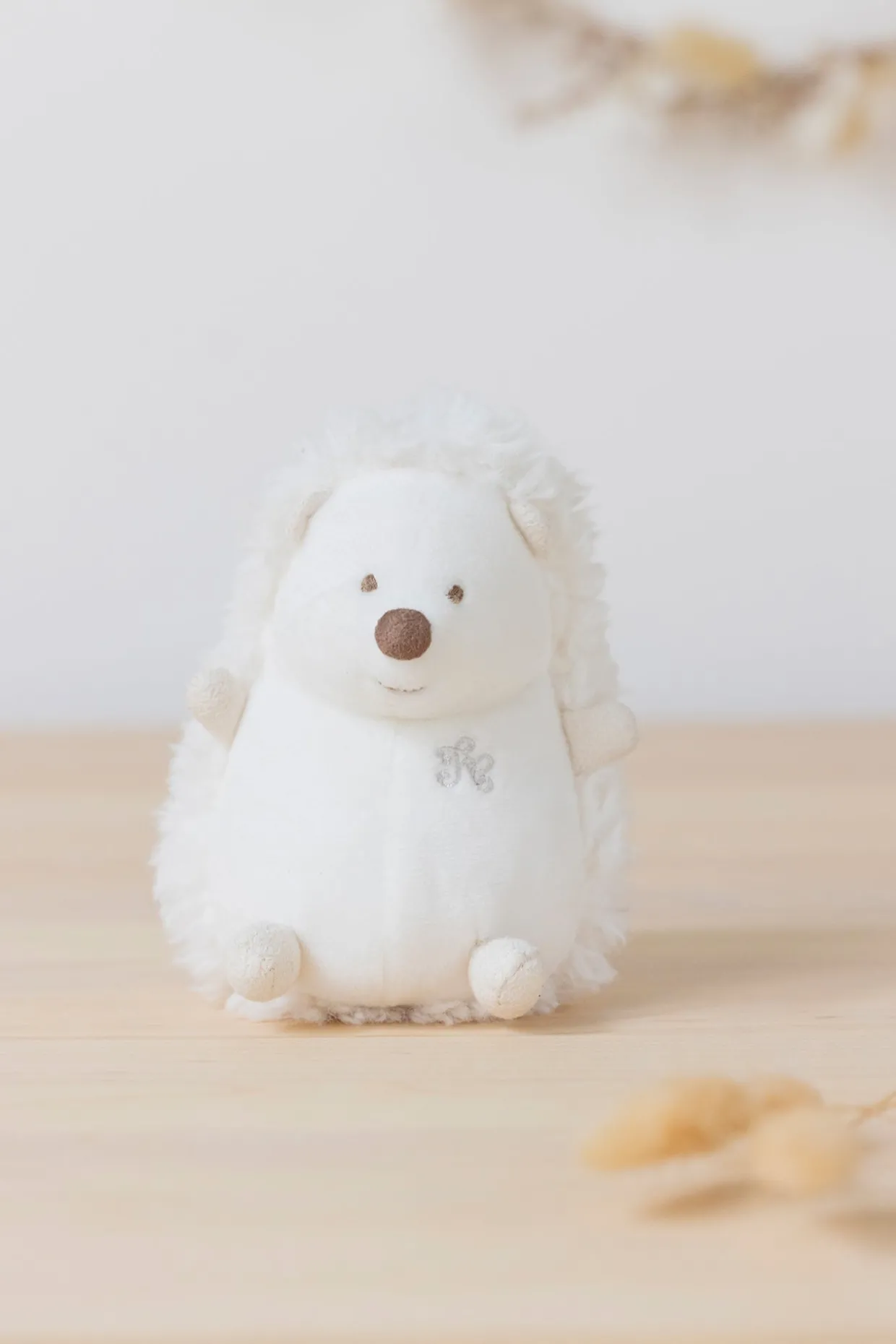 Peluche Léon, le hérisson, de 12 cm (mesure prise de haut en bas) en fourrure synthétique écrue. Livrée dans une boite Tartine et Chocolat. Léon le Hérisson : Personnage emblématique de la maison Tartine et Chocolat. Léon le hérisson est un petit animal attachant qui protège ses amis et porte chance à celui qui l’accompagne. Avec son petit nez boule et son joli sourire, il apportera douceur et joie aux enfants.