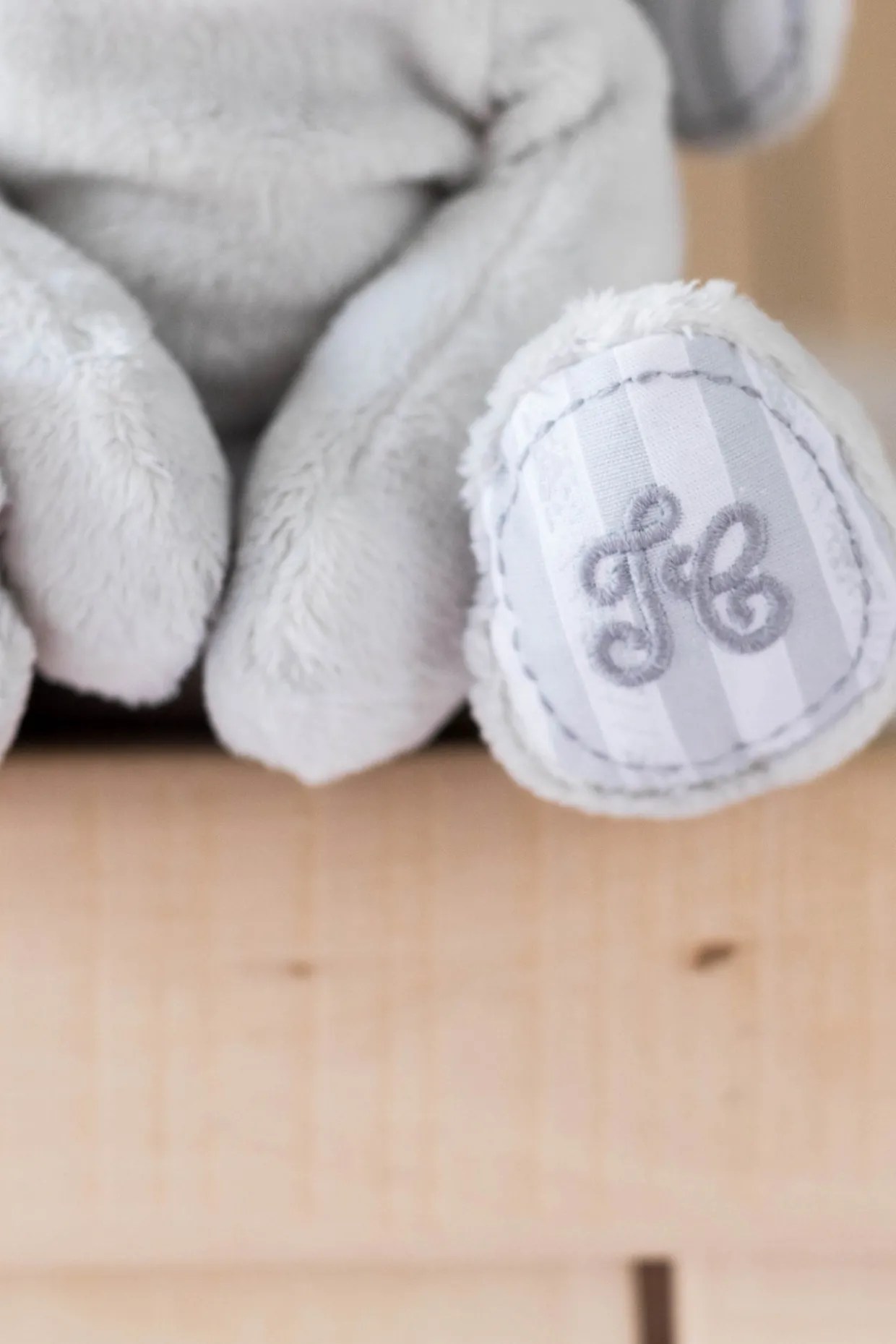 Lucien, le chien gris de 35 cm (mesure prise de haut en bas). D’une grande douceur, la peluche est soulignée de tissu Garda, la rayure emblématique de la Maison, réhaussée de point sellier et d’une broderie monogramme TC. Il tient assis ou couché. Livré dans un pochon Tartine et Chocolat. Lucien le chien : Un petit chiot gris qui adore faire de clins. Le meilleur ami de tous, Lucien le Chien accompagnera le quotidien des plus petits comme des plus grands.
