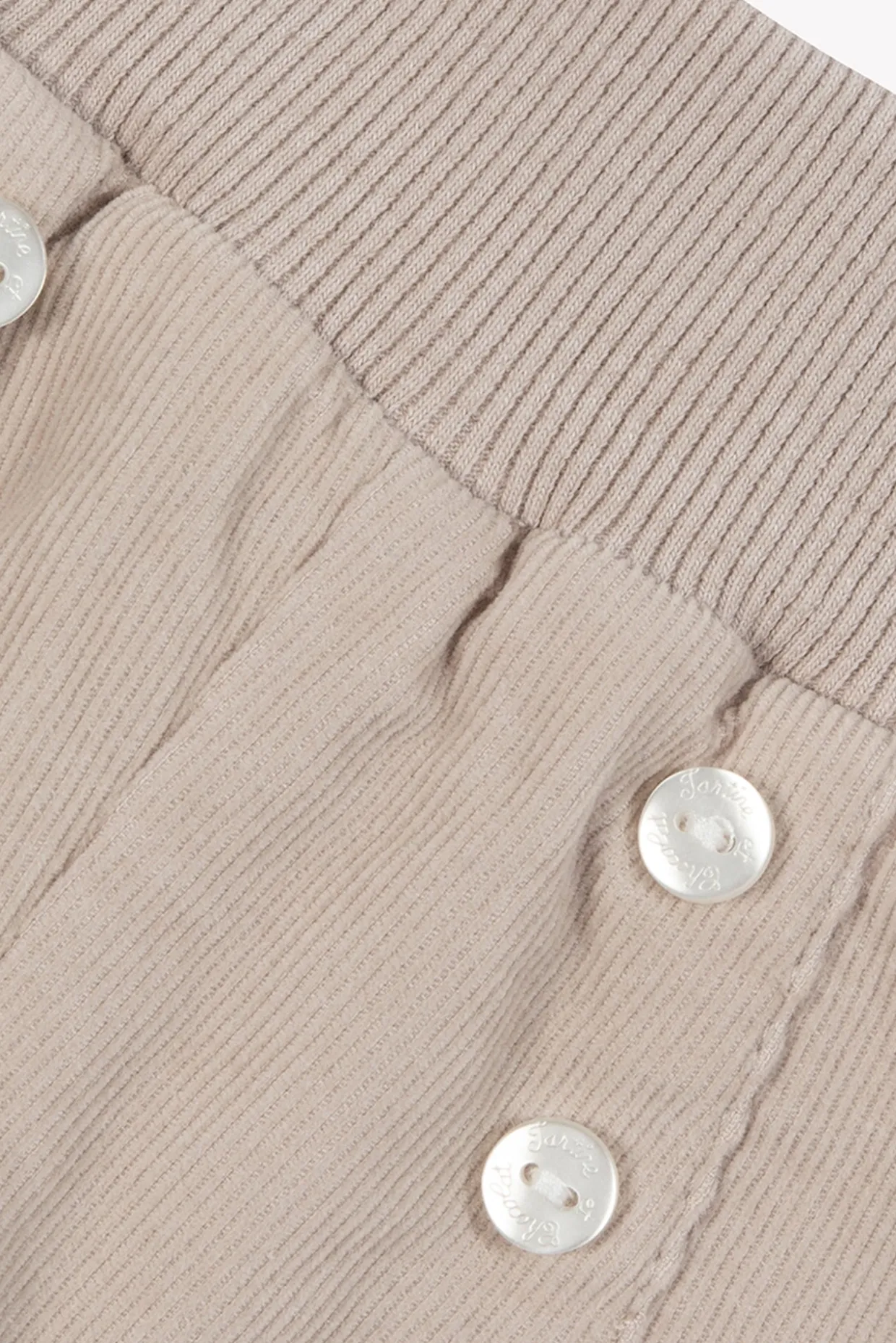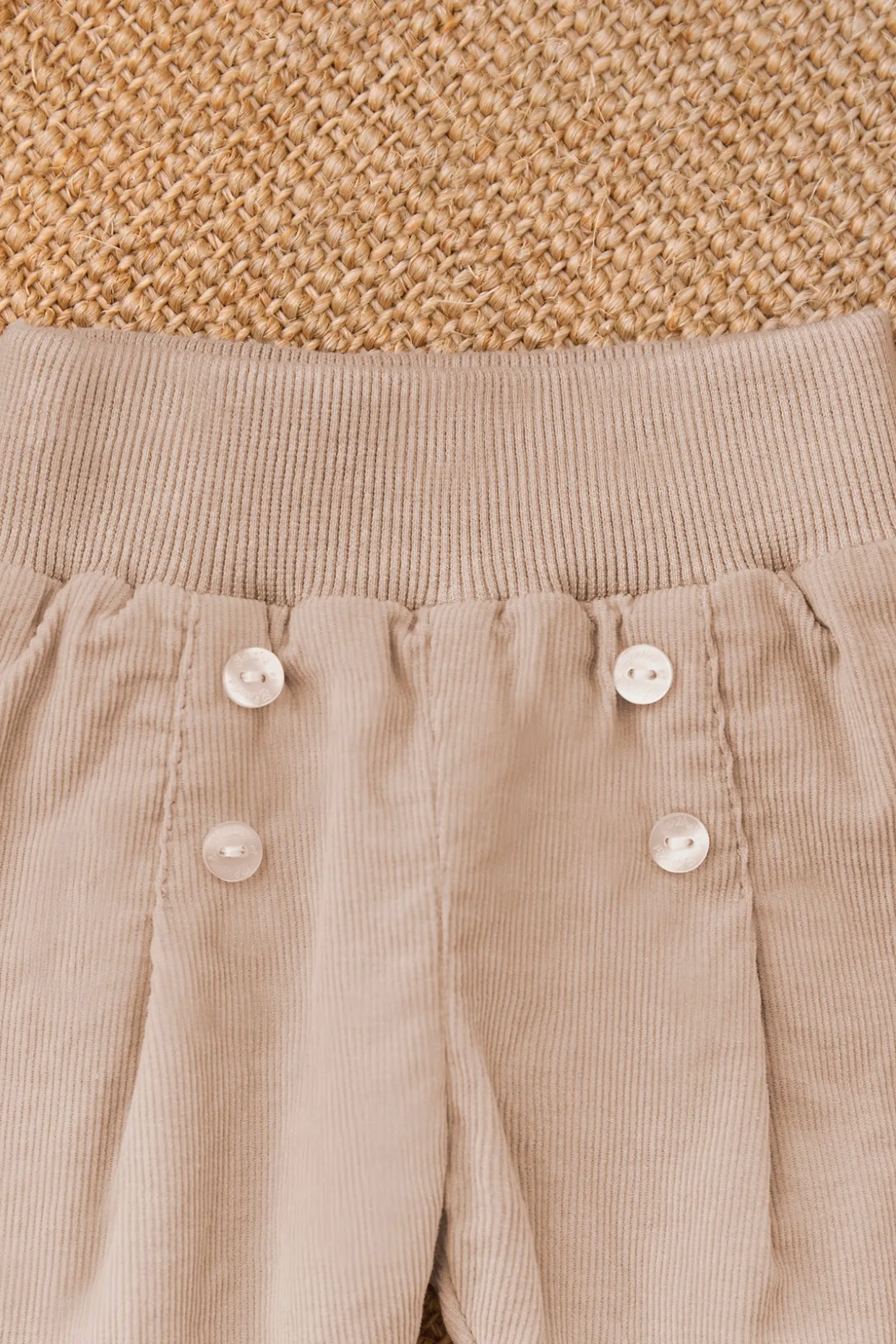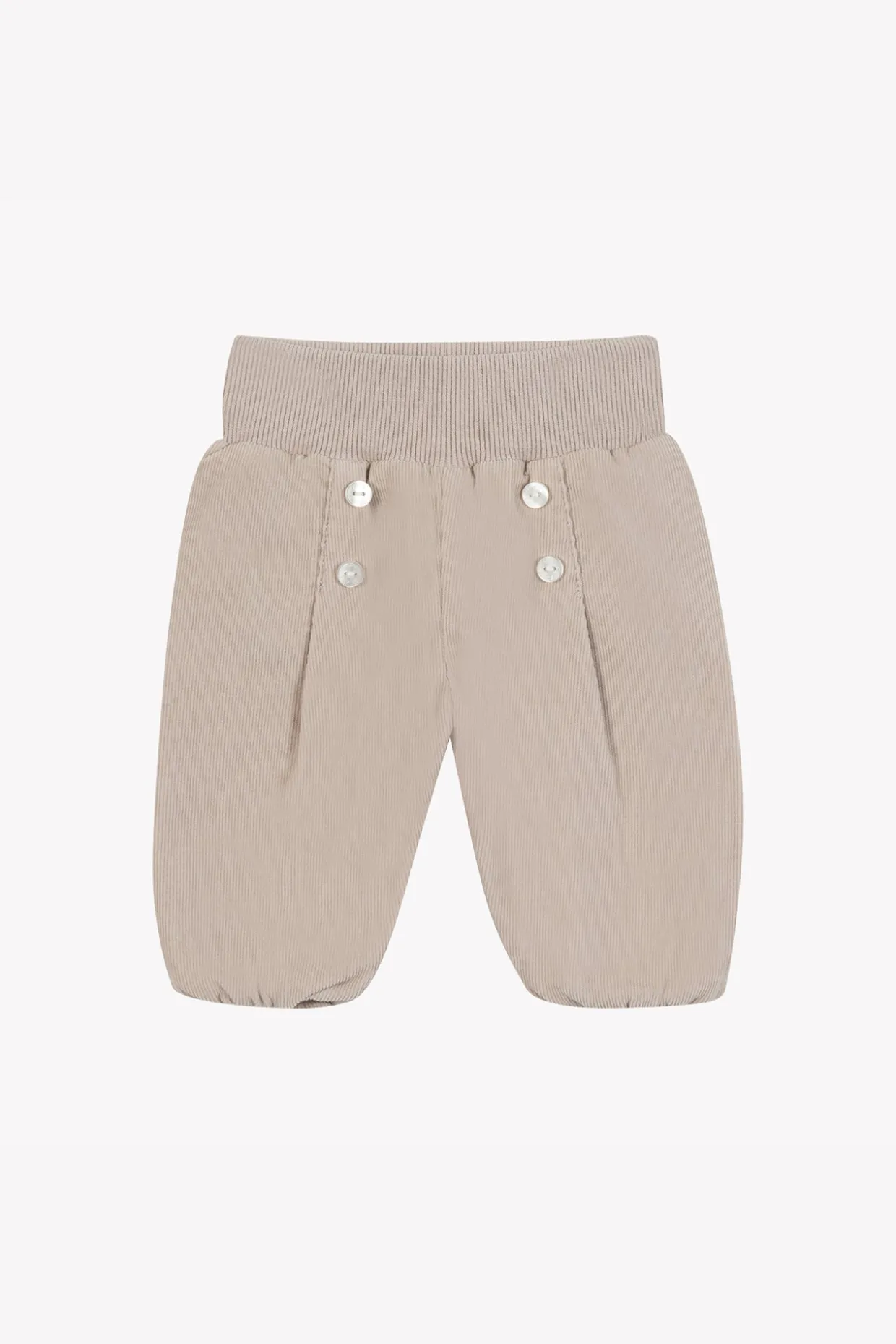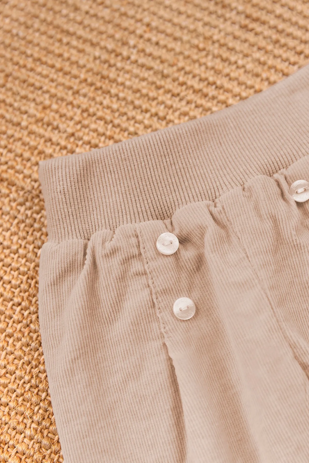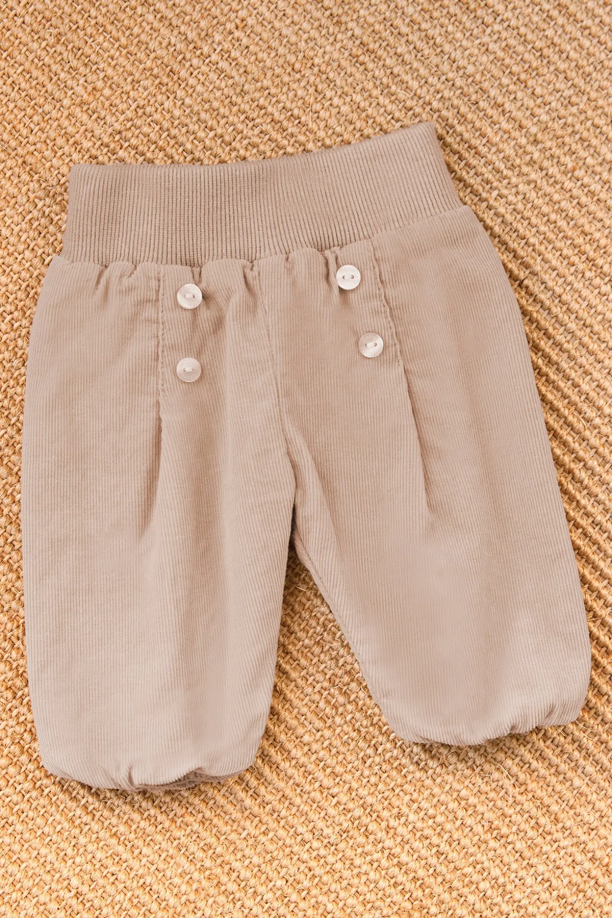Ce pantalon pour naissance mixte, en coloris moka, est confectionné en coton doux pour un confort optimal dès les premiers jours. Son détail de boutons sur le devant ajoute une touche de charme à cette pièce essentielle du vestiaire des tout-petits.