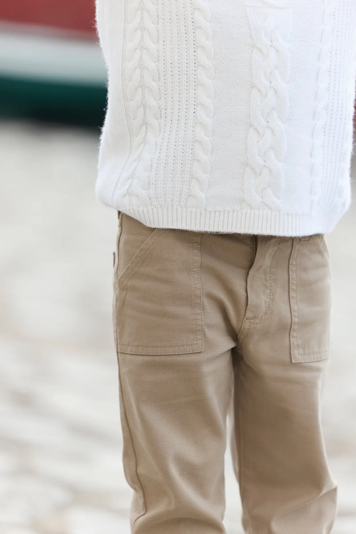 Ce pantalon pour junior garçon, en coloris sable, se distingue par ses poches stylisées et son bouton de fermeture. Confectionné avec soin, il offre à la fois confort et élégance, parfait pour des tenues à la fois décontractées et raffinées. Un indispensable du vestiaire masculin.