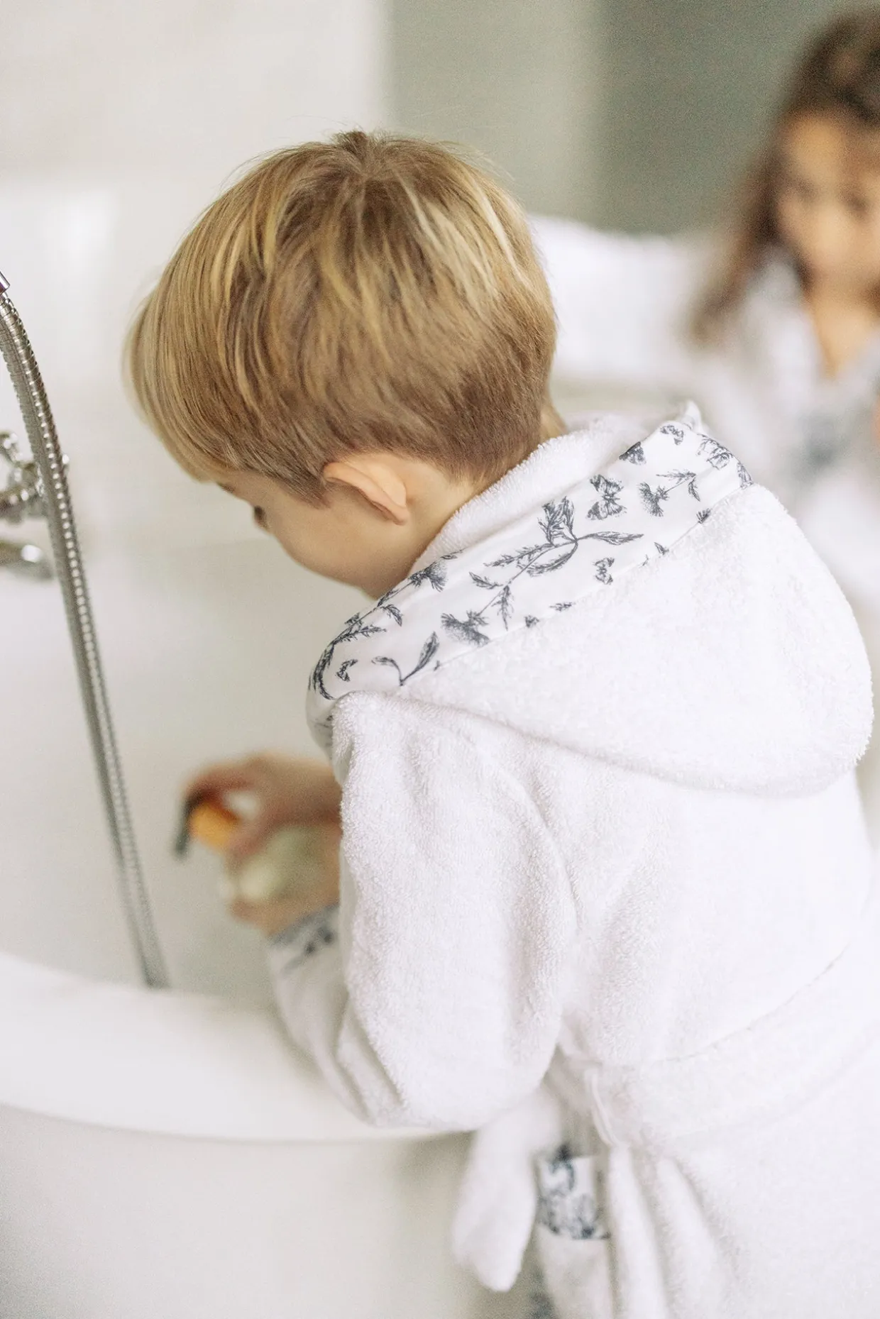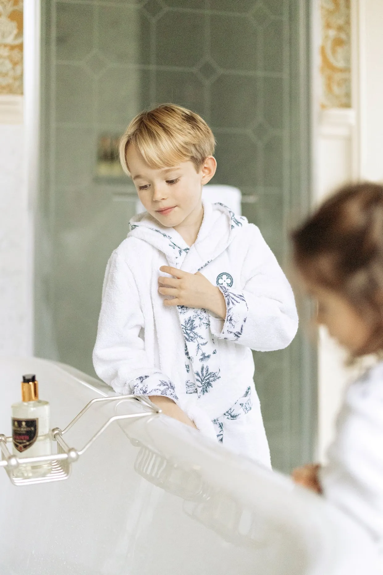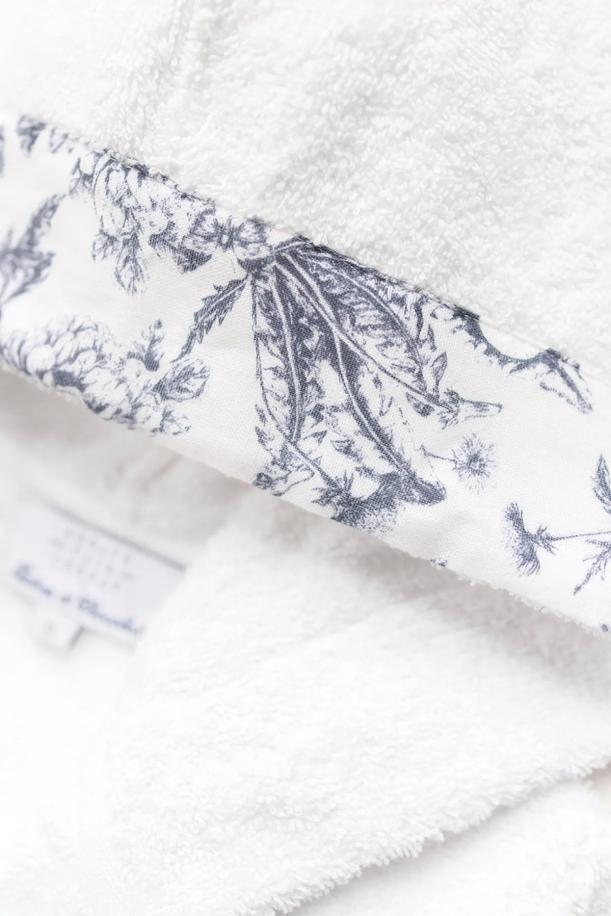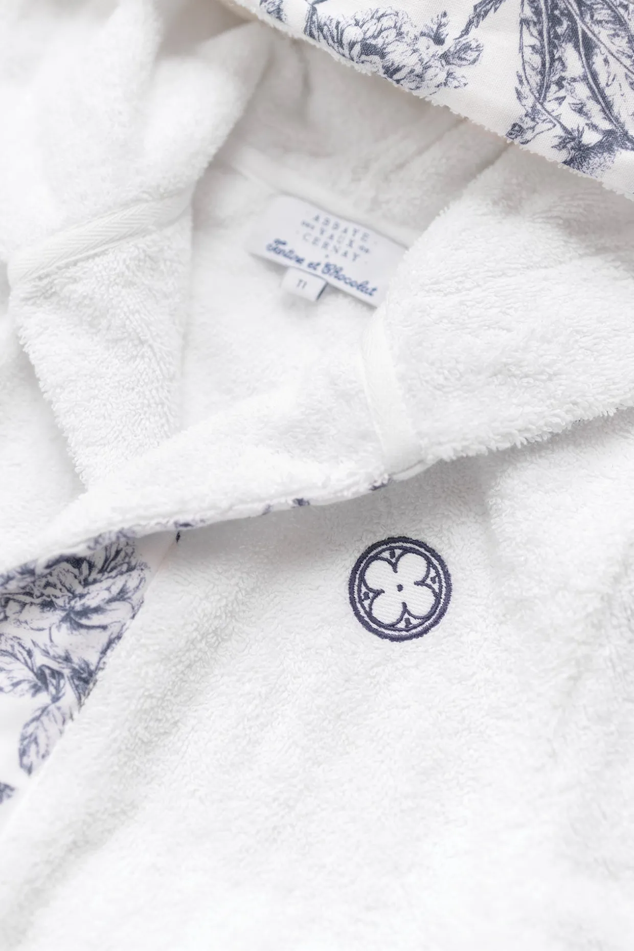 Découvrez notre nouvelle collaboration, une collection qui est la rencontre entre Tartine et Chocolat et l’Abbaye des Vaux-de-Cernay. Partageant un héritage commun, elle met en lumière l’imprimé d’inspiration Toile de Jouy, sublimé par son élégante couleur marine qui lui confère à la fois raffinement et authenticité. Elégant peignoir en éponge et bordée de l’imprimé Toile de Jouy.