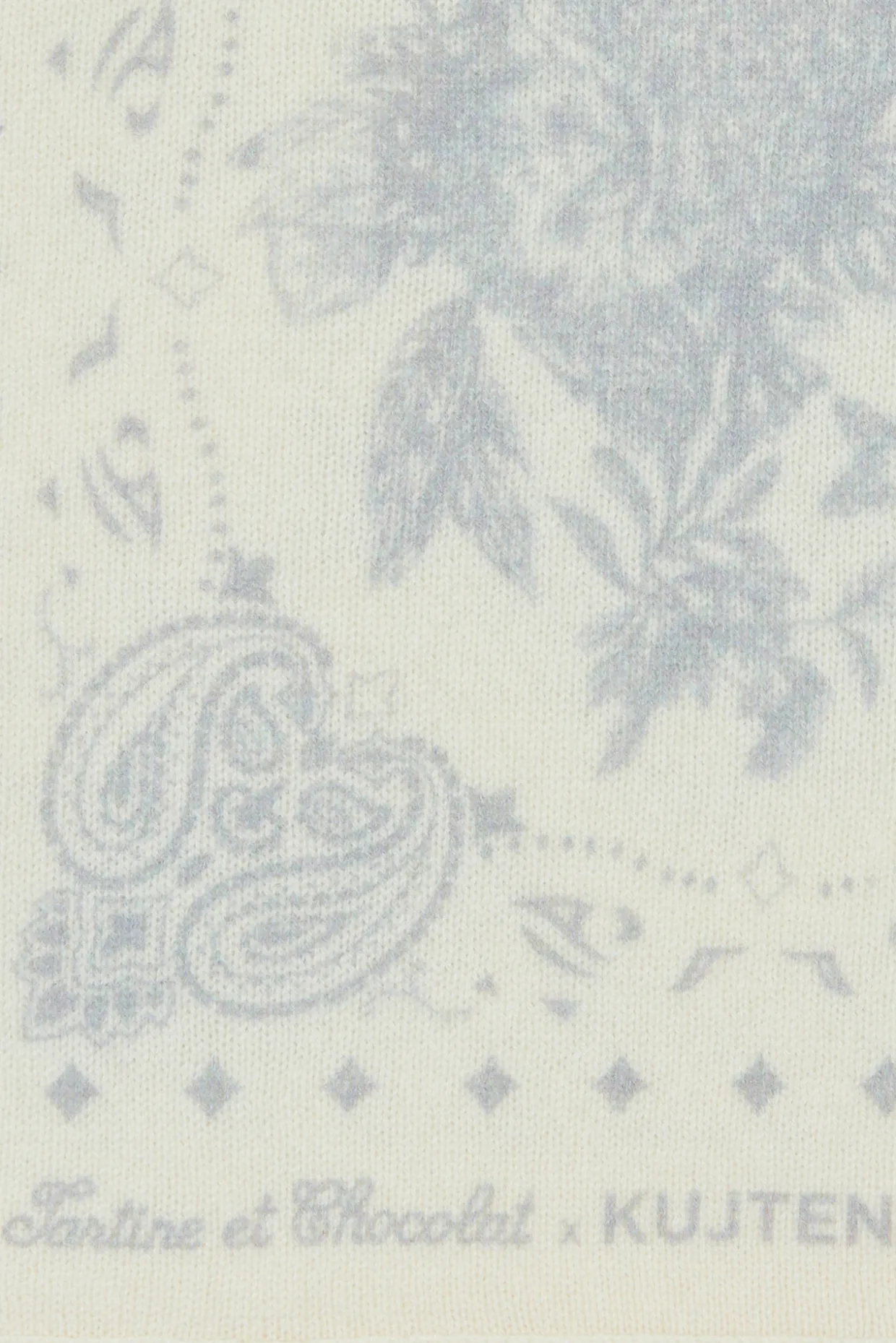 Une collaboration qui allie douceur et élégance ! Tartine et Chocolat s’associe à Kujten pour une collection en cachemire d’exception. Ce petit foulard en cachemire gris clair, orné d’un imprimé délicat, apporte une note de sophistication à chaque tenue. Sa taille discrète en fait un accessoire polyvalent, à nouer selon vos envies pour un style toujours raffiné.
