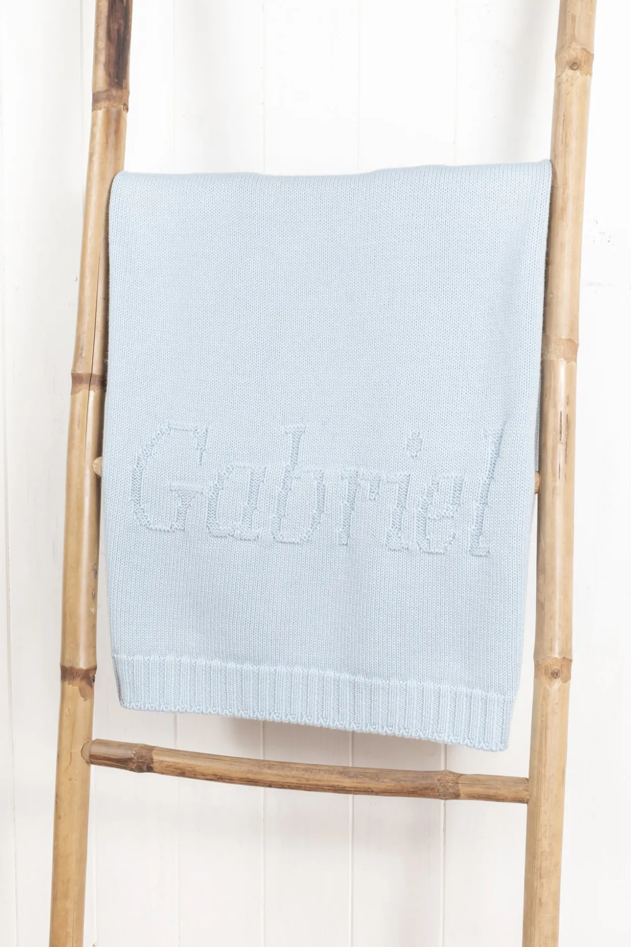 Ce plaid personnalisé en laine est à personnaliser au prénom ou aux initiales de l’enfant pour un cadeau unique qui accompagnera bébé pendant ses premières années. Le prénom est tricoté directement dans le plaid et est fabriqué à la commande dans un atelier du Portugal. Dimensions : 100 x 75 cm. La personnalisation: 10 caractères maximum – Police Georgia – tous les accents, majuscules, minuscules sont possibles. Chaque plaid sera soigneusement emballé dans du papier de soie parfumé au Ptisenbon et inséré dans une boite cadeau fermée par un ruban. Fabriqué au Portugal