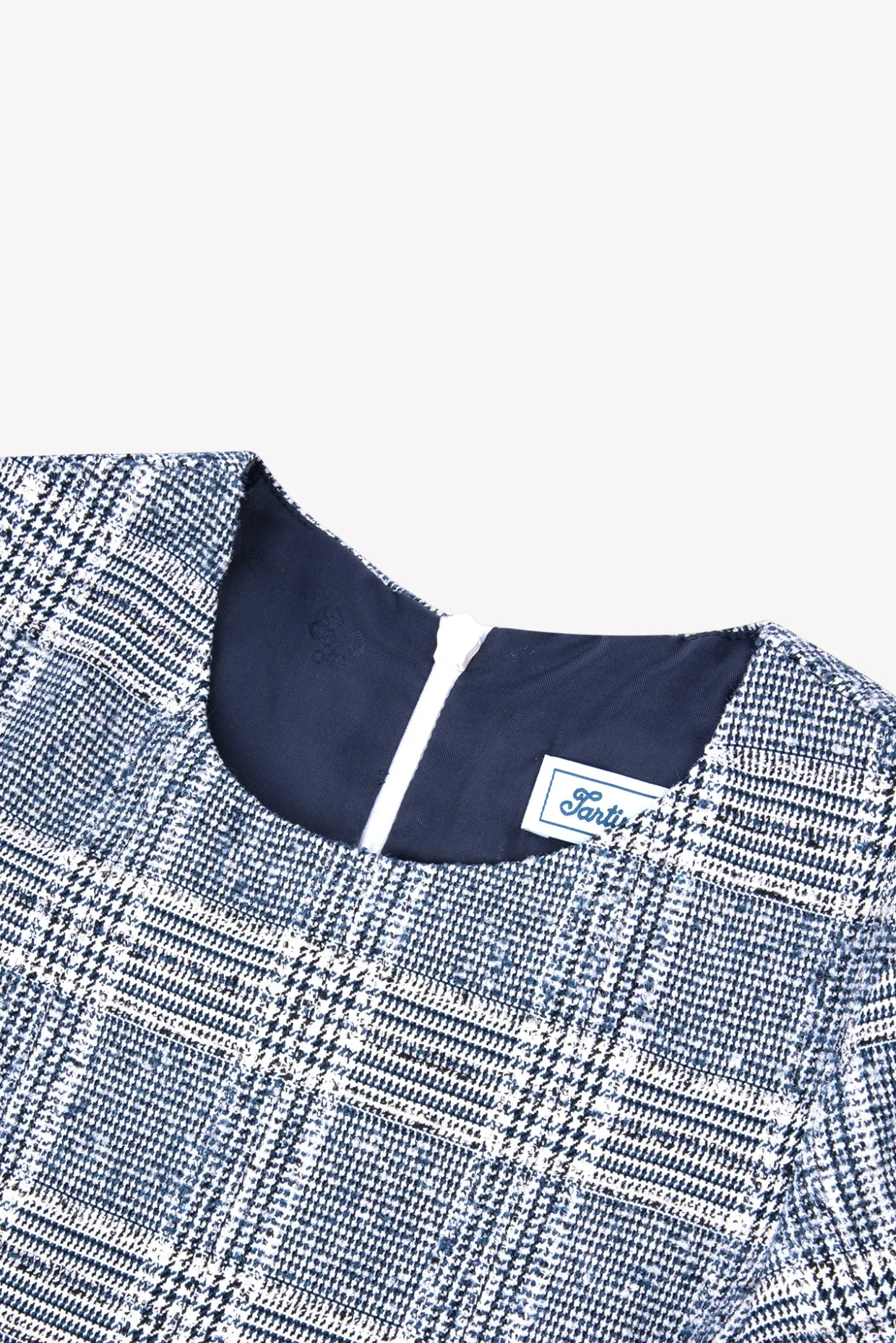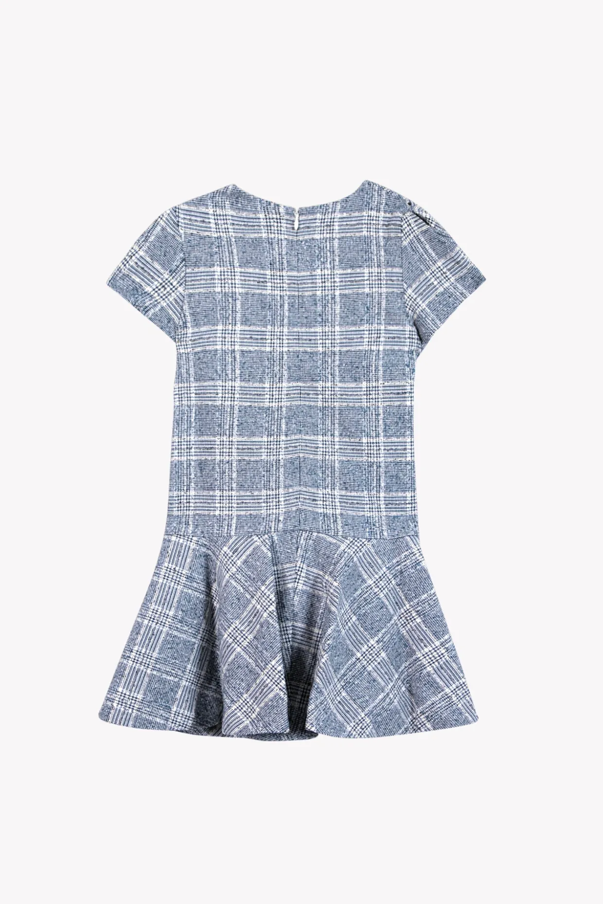 Cette robe pour junior fille, en couleur marine et confectionnée en tweed, se distingue par son bas plissé et ses deux poches. Son col rond et ses manches courtes apportent une touche de simplicité élégante. Une robe à la fois chic et confortable, parfaite pour le quotidien.