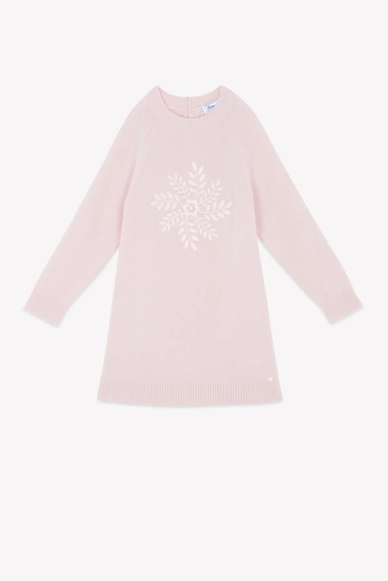Cette robe pour junior fille, en coloris rose poudré, est confectionnée en 100 % laine pour offrir chaleur et confort. Un flocon délicatement brodé à la main au centre apporte une touche hivernale pleine de poésie. Avec ses manches longues et sa coupe épurée, elle est idéale pour les journées fraîches.