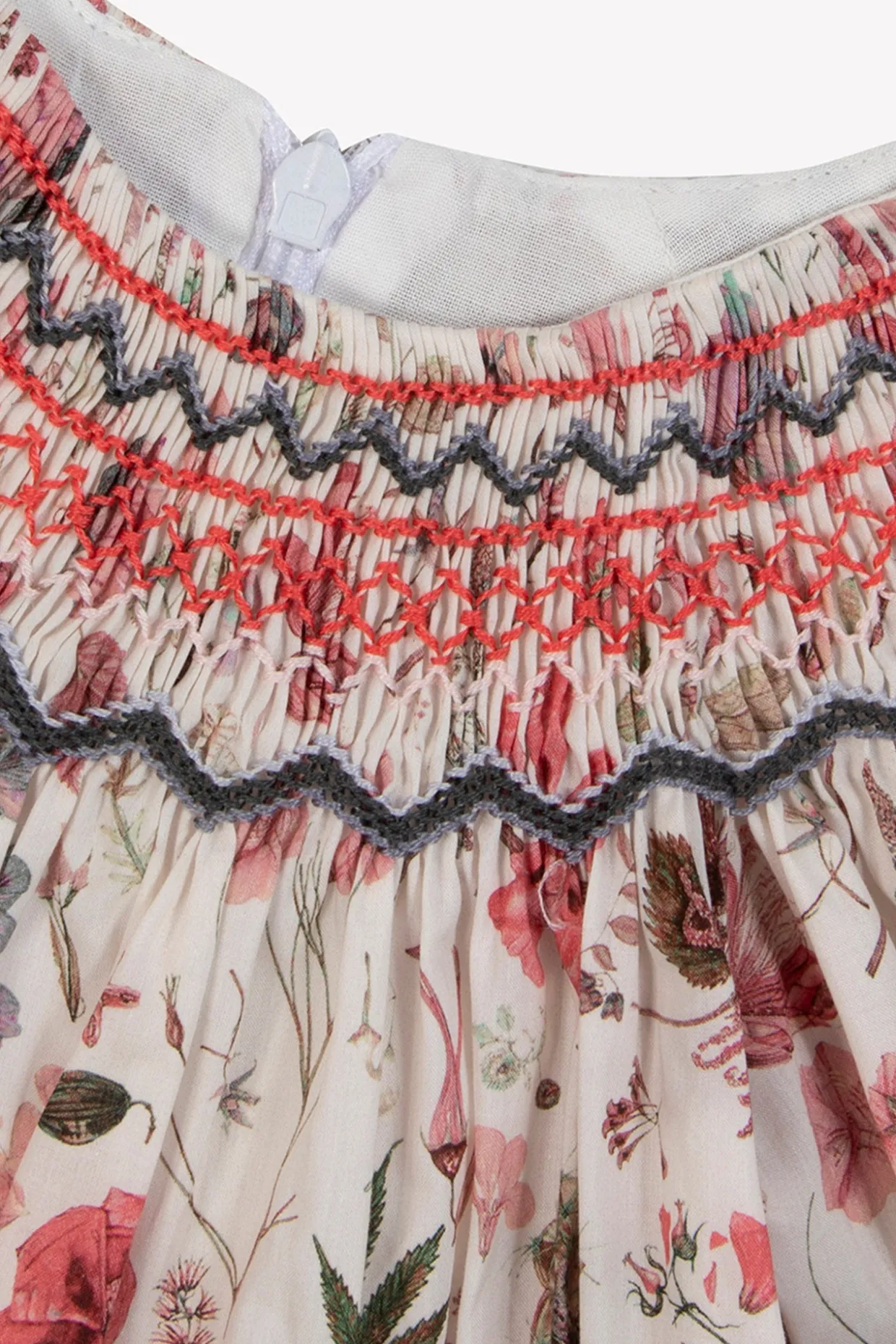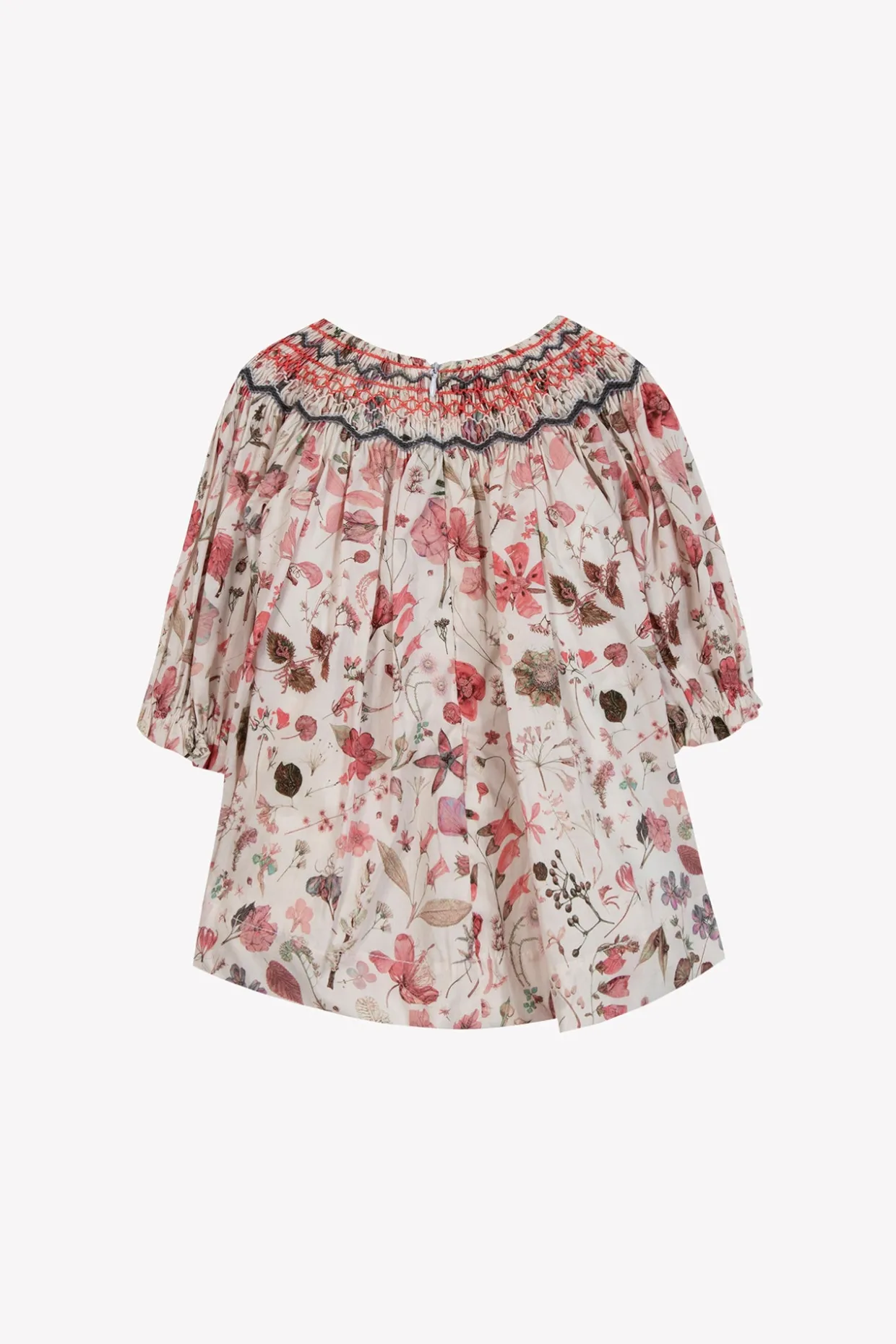 Cette robe pour bébé fille séduit par son tissu liberty délicat, sublimée par une coupe smockée et une broderie réalisée à la main, apportant une touche poétique et raffinée à l’ensemble. Confectionnée avec soin, elle offre confort et élégance pour accompagner les tout-petits avec charme au fil des saisons.
