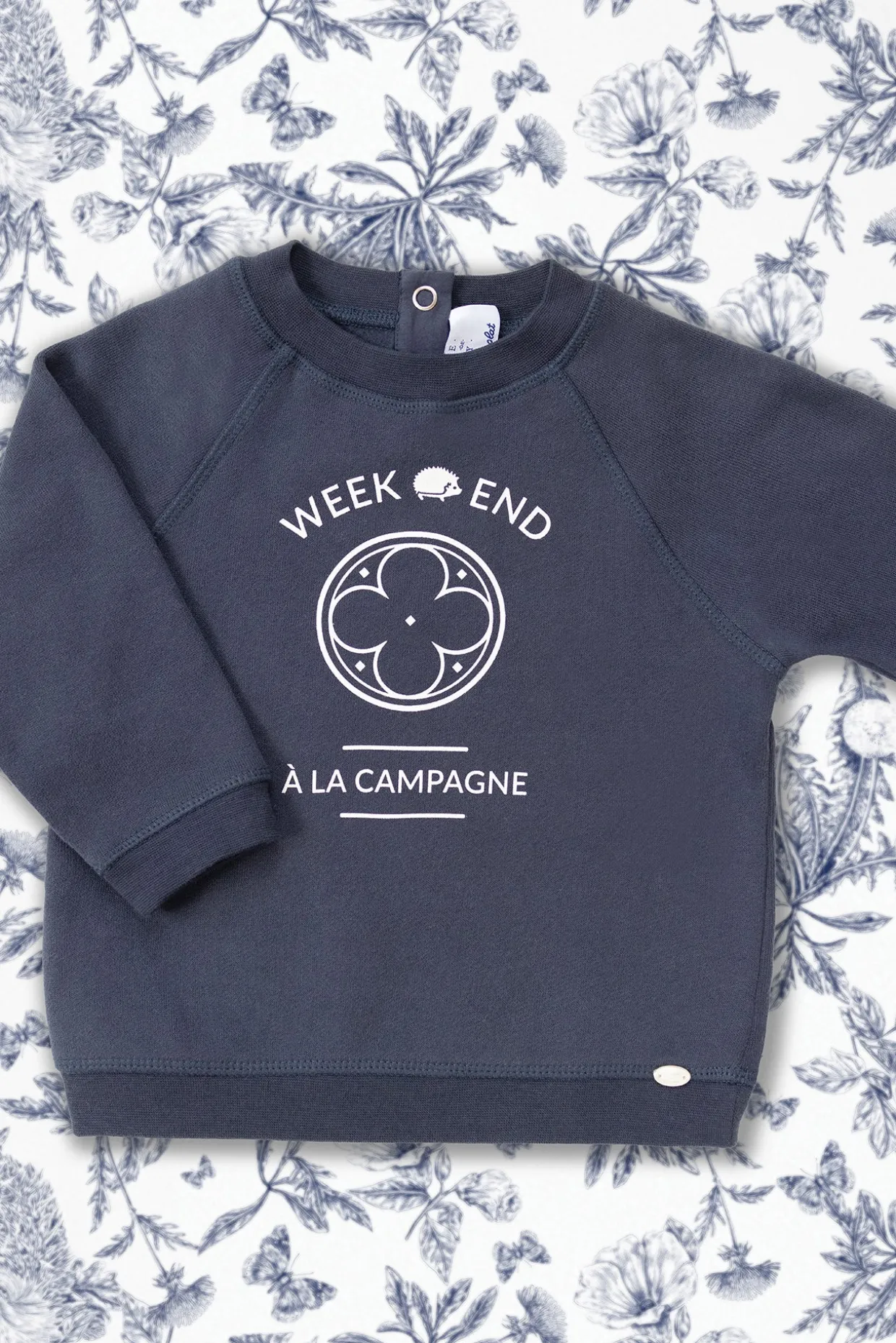 Un essentiel pour un week-end à la campagne le sweat en coton gratté, doux et chaud, il sera vite adopté.