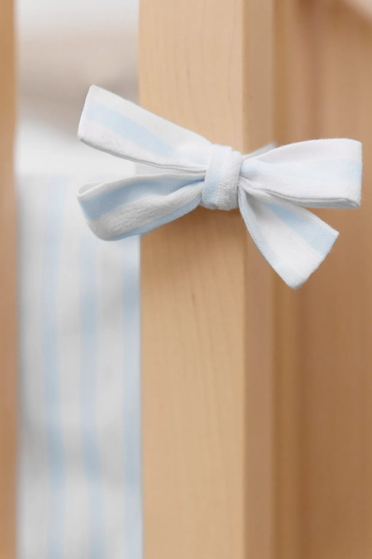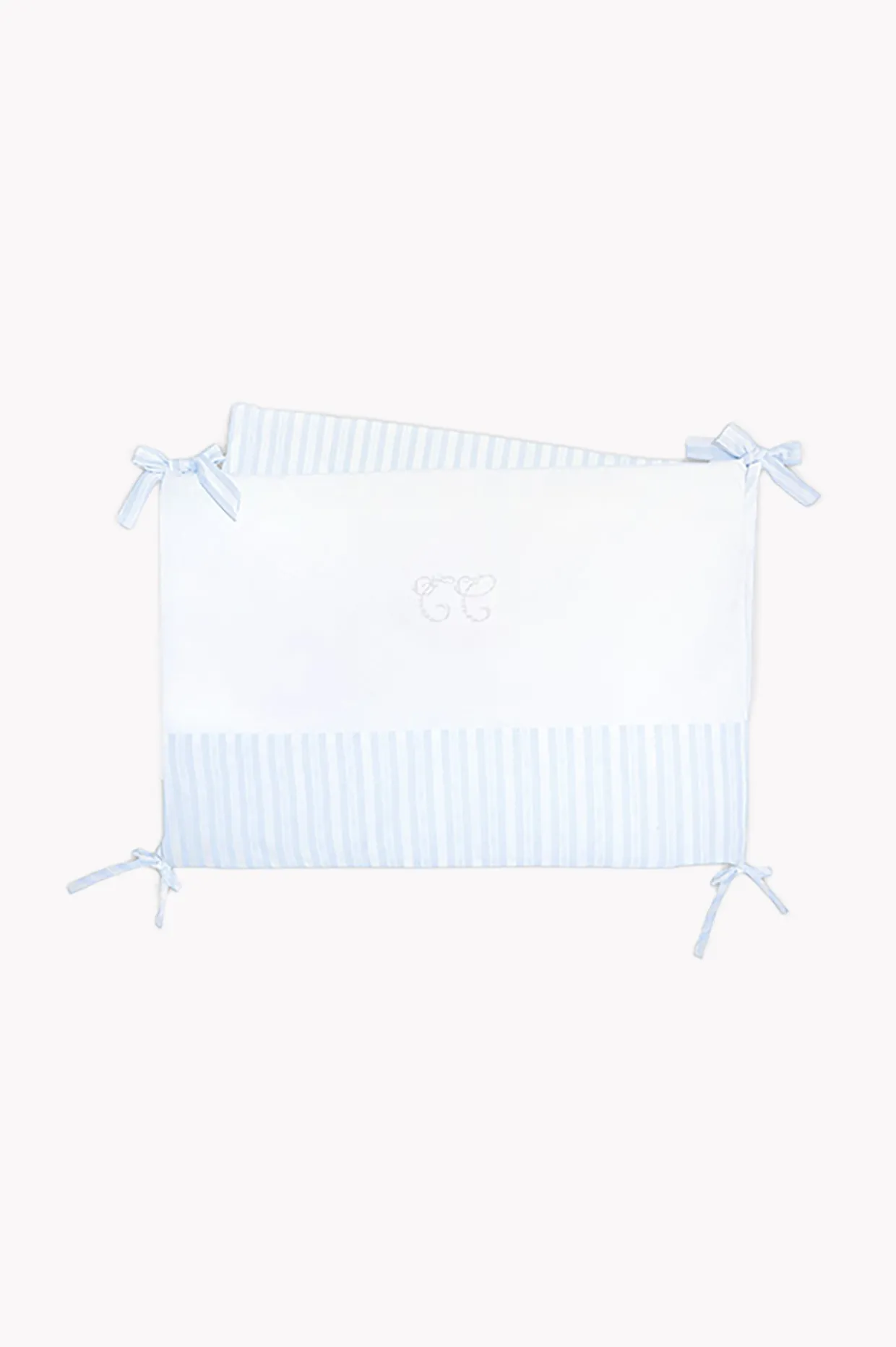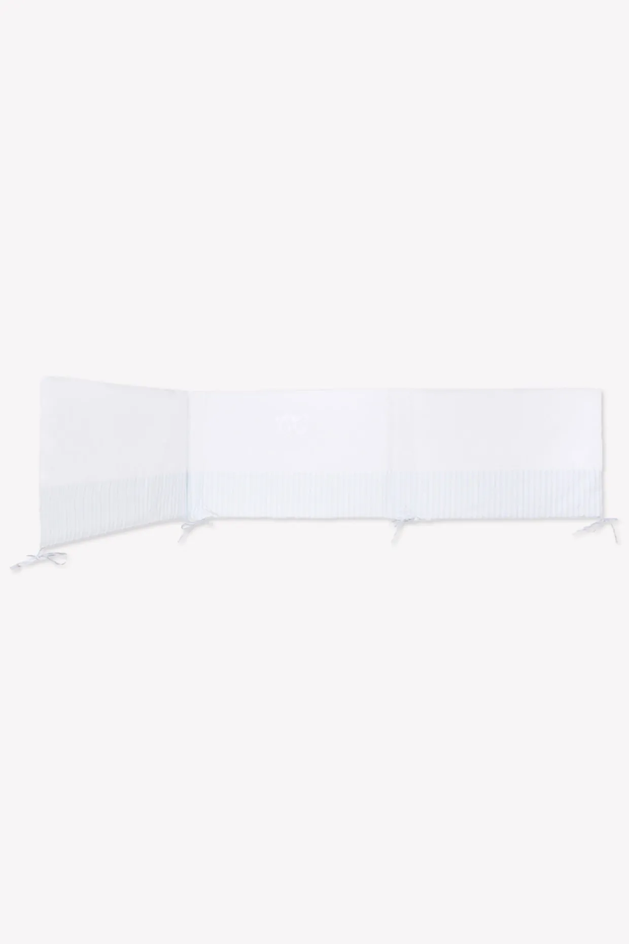 Tour de lit adaptable Garda bleu ciel, en popeline de coton piqué et fil à fil. Se fixe aux barreaux du lit par de petits noeuds. Dimensions : 40 x 175 cm. Compatible pour lits de 60 x 120 cm, ou lits de 70 x 140 cm. La ligne Garda : une ligne emblématique qui symbolise tout l’esprit Tartine et Chocolat. Des rayures chics et élégantes, associées aux couleurs pastel de l’enfance, un écusson finement brodé, des tissus doux et tendres. Fabriqué au Portugal.