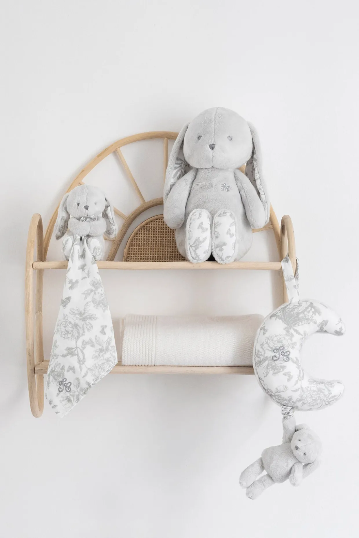 Augustin le lapin revient sous une nouvelle forme avec son imprimé inspiré de la Toile de Jouy grise dessiné par Tartine et Chocolat. Petit lapin câlin aux longues oreilles, facile à attraper pour bébé. Grâce à son visage rassurant et sa douceur, il illuminera le plus délicieux des rêves de bébé. Cet adorable doudou est livrée dans une boite Toile de Jouy, un packaging spécifique de la ligne.Pays de fabrication : Chine