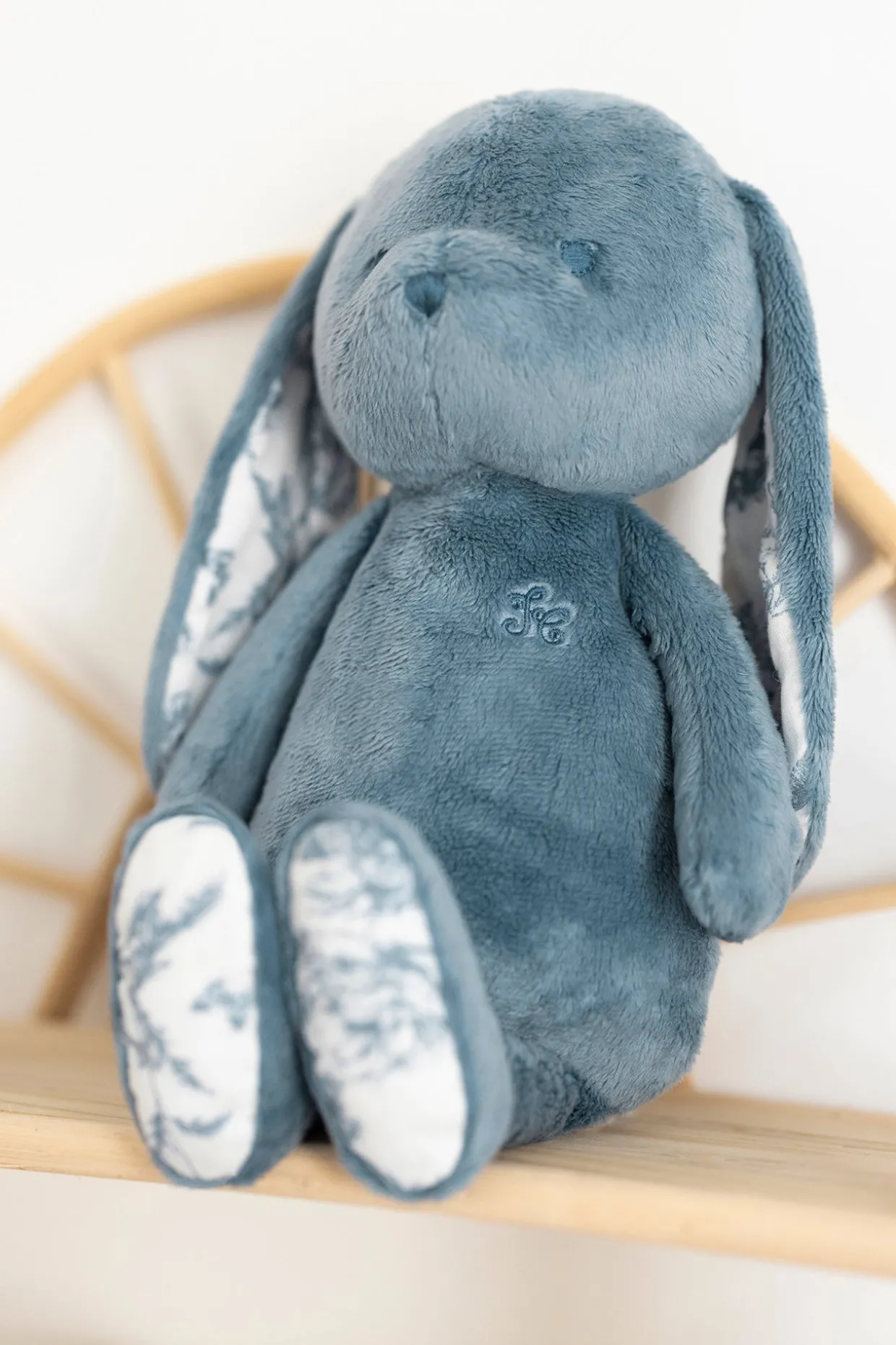 Augustin le lapin revient sous une nouvelle forme avec son imprimé inspiré de la Toile de Jouy bleue dessiné par Tartine et Chocolat. Petit lapin câlin aux longues oreilles, facile à attraper pour bébé. Grâce à son visage rassurant et sa douceur, il illuminera le plus délicieux des rêves de bébé. Cet adorable peluche en 25cm est livrée dans une boite Toile de Jouy, un packaging spécifique de la ligne.