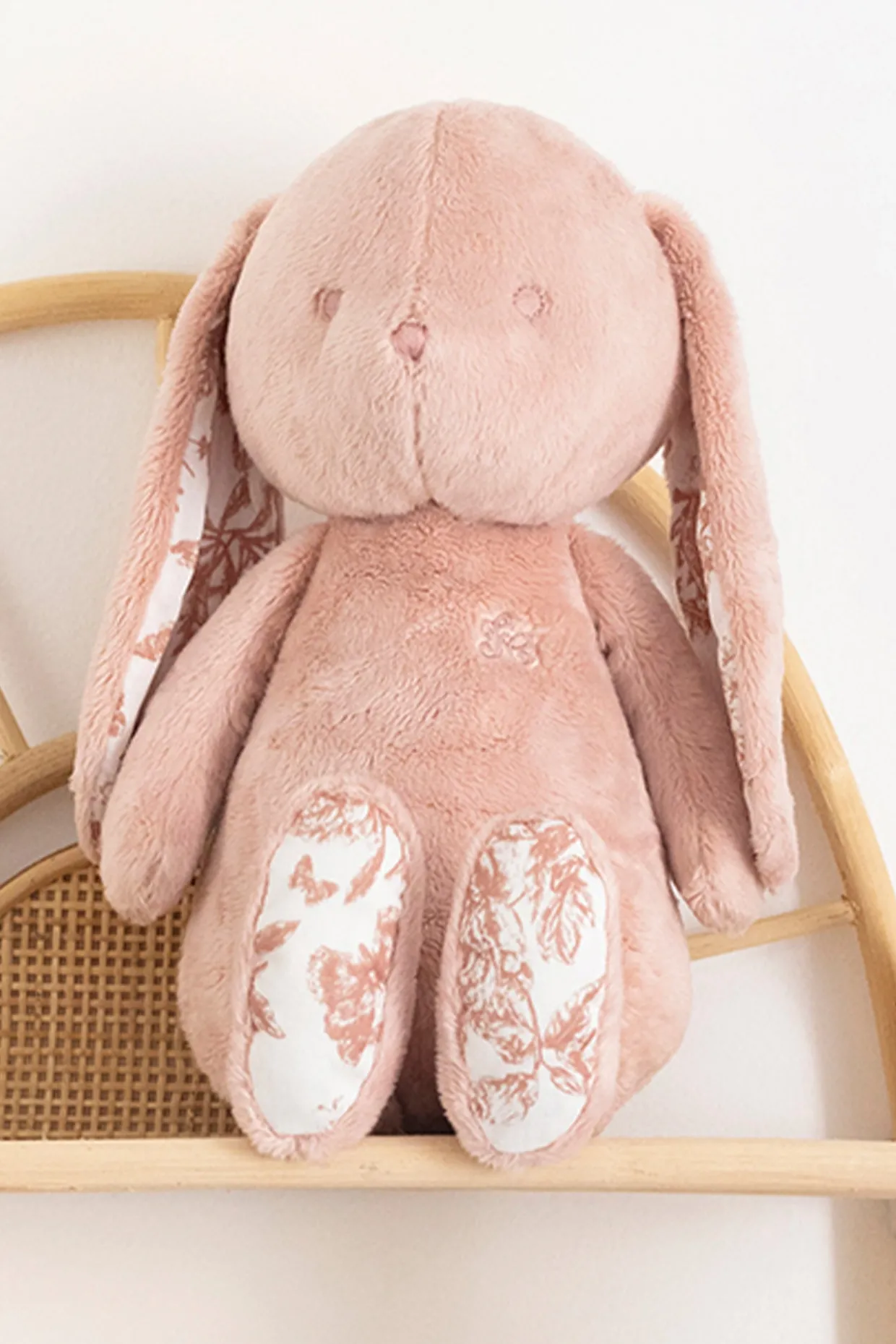 Augustin le lapin revient sous une nouvelle forme avec son imprimé inspiré de la Toile de Jouy rose dessiné par Tartine et Chocolat. Petit lapin câlin aux longues oreilles, facile à attraper pour bébé. Grâce à son visage rassurant et sa douceur, il illuminera le plus délicieux des rêves de bébé. Cet adorable peluche en 25cm est livrée dans une boite Toile de Jouy, un packaging spécifique de la ligne.