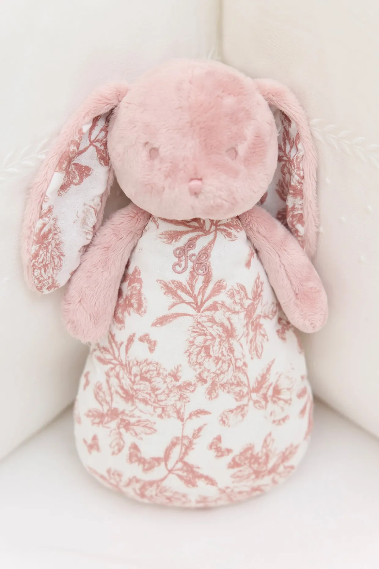 Nouveau produit dans la ligne Toile de Jouy : la veilleuse musicale. Augustin lapin revient dans sa gigoteuse Toile de Jouy avec de nouvelles fonctionnalités: La vielleuse musicale diffuse une douce lumière qui rassurera bébé selon 2 intensités. Elle émet également plusieurs sons doux, tels que le bruit de l’océan, le murmure d’un ruisseau, les battements du cœur, ainsi que deux mélodies apaisantes. Un minuteur réglable permet de choisir entre 15 et 30 minutes pour une utilisation adaptée à chaque moment. Rechargeable par USB (câble inclus), le boîtier se retire facilement pour un passage en machine, garantissant une hygiène parfaite. Les veilleuses musicales sont présentées dans de magnifiques boîtes Toile de Jouy, parfaites pour offrir ou décorer une chambre d’enfant.