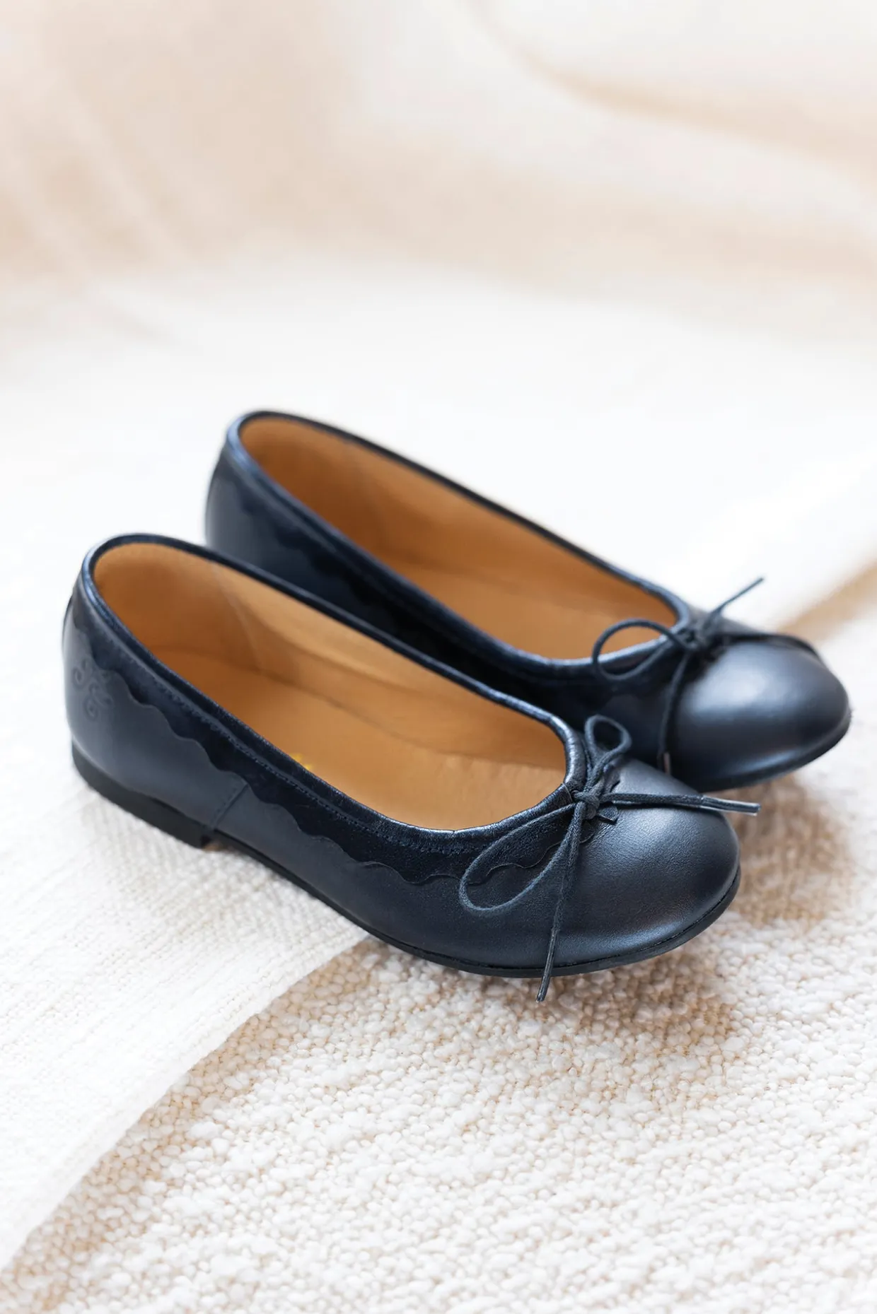 Ces ballerines pour enfants sont présentées dans une version en cuir bleu marine. Elles sont conçues avec des matériaux de qualité pour le bon développement du pied et l’apprentissage de la marche. Ses semelles souples et ses petits talons de confort permettent un bon déroulement du pied. Ces délicates ballerines sont ornées d’un joli nœud, ajoutant une touche d’élégance à son look. Confortables et tendance, elles sont idéales pour accompagner toutes ses tenues du quotidien.