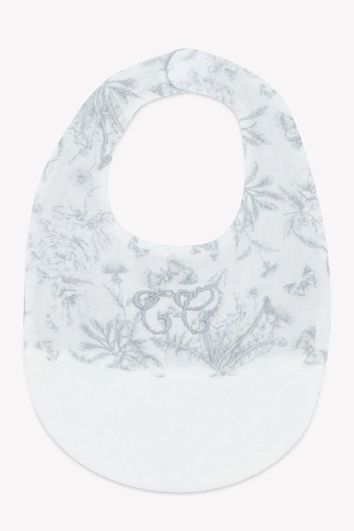 Bavoir imprimé inspiration Toile de Jouy dessiné par Tartine et Chocolat réversible, d’un côté, un joli gris chic et de l’autre un imprimé élégant et coup de cœur. Fermeture avec bouton pression. Dimensions : 34 x 23 cm.