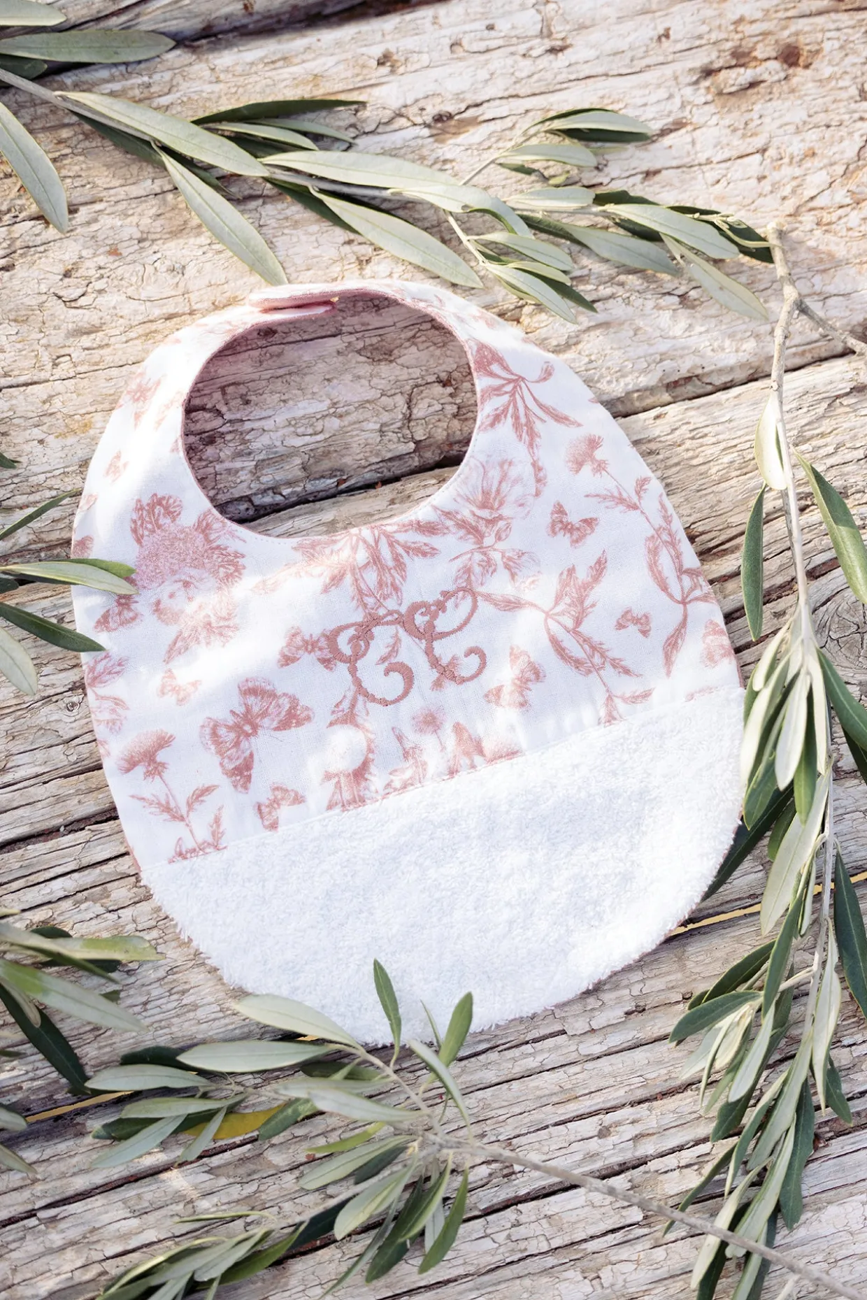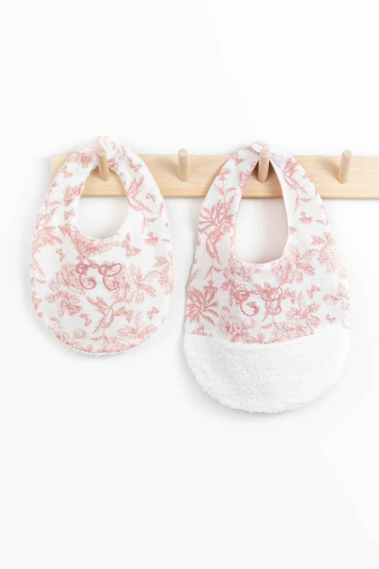Bavoir imprimé inspiration Toile de Jouy dessiné par Tartine et Chocolat réversible, d’un côté, un joli rose profond et chic et de l’autre un imprimé élégant et coup de cœur Dimensions : 34 x 23 cm.