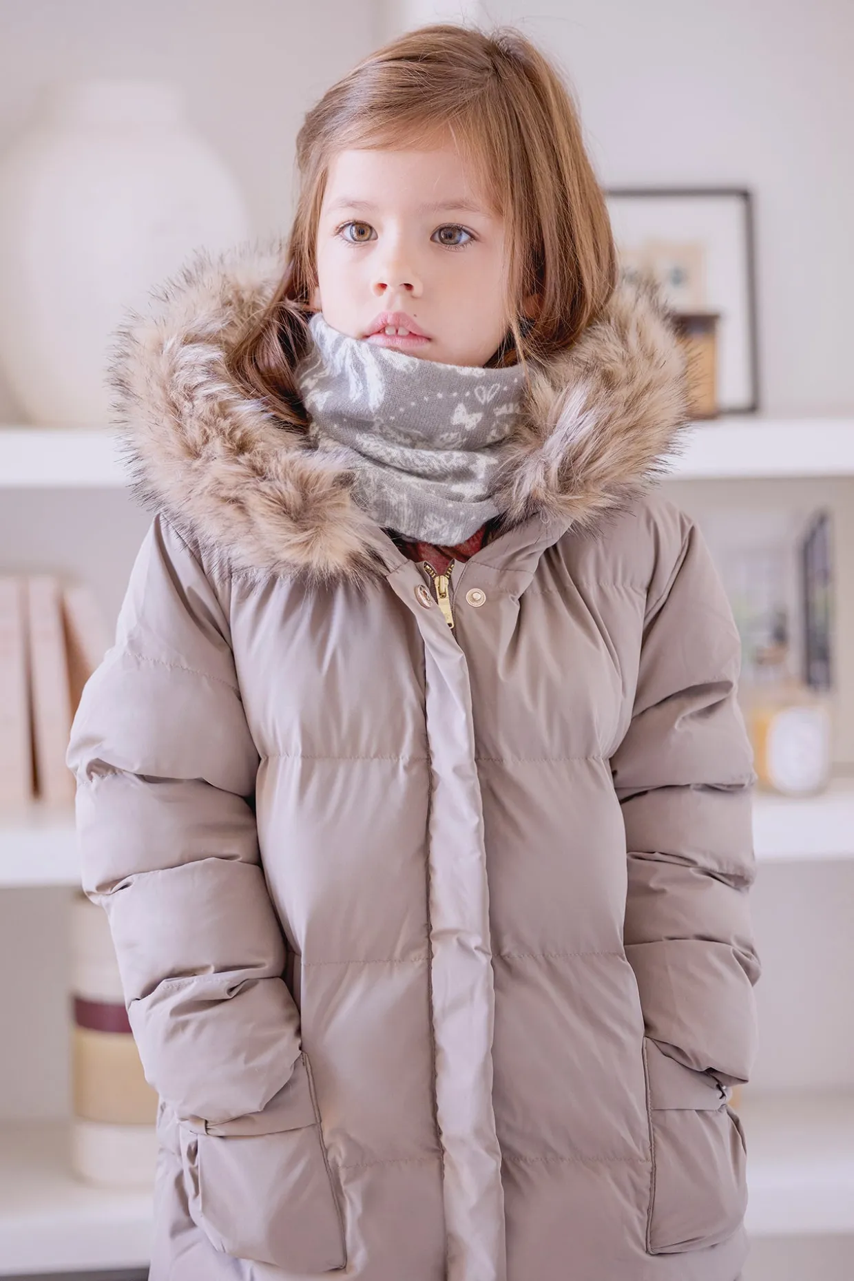 Une collaboration qui allie douceur et élégance ! Tartine et Chocolat s’associe à Kujten pour une collection en cachemire d’exception. Ce cache-cou en cachemire taupe, délicatement orné d’un imprimé subtil, enveloppe votre enfant de chaleur et de confort tout en apportant une note raffinée à ses tenues. Sa texture soyeuse et sa coupe parfaitement ajustée en font un indispensable pour les journées d’hiver.