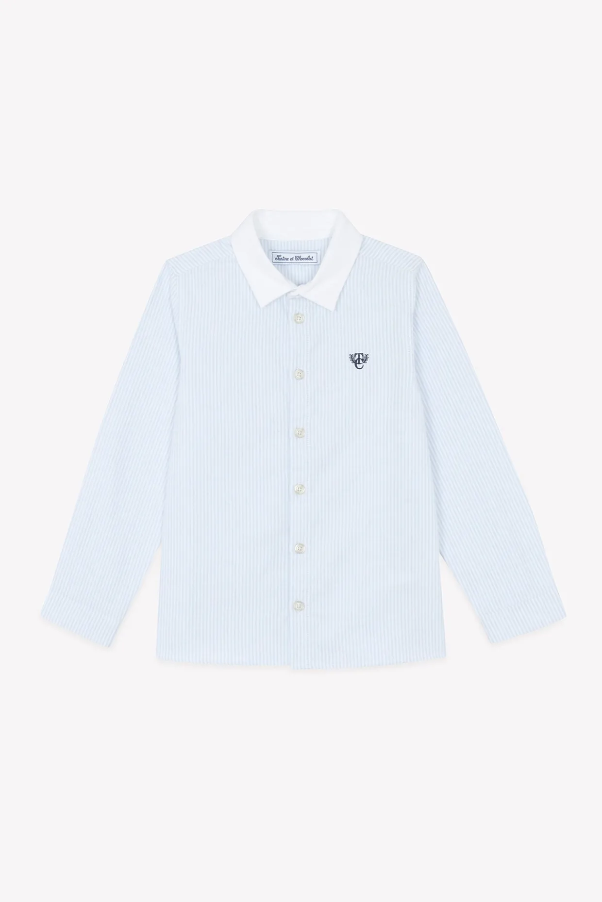 Cette chemise à manches longues pour junior garçon, en coloris bleu ciel rayé, se distingue par son élégance intemporelle et son illustration signature TC, apportant une touche de raffinement discrète. Confectionnée en coton doux, elle assure un confort optimal tout au long de la journée. Ses boutons apparents ajoutent une note classique et sophistiquée. Idéale pour une cérémonie, cette pièce essentielle du vestiaire des grandes occasions s’associe parfaitement avec un pantalon habillé pour un look chic et sophistiqué.