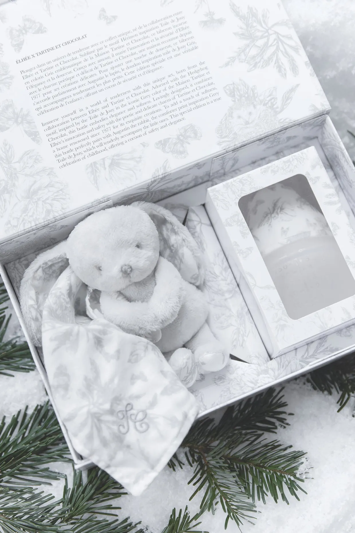 Plongez dans un univers de tendresse avec ce coffret exclusif, fruit de la collaboration entre Elhée et Tartine et Chocolat. Composé d’un biberon anti-colique en Toile de Jouy et d’un doudou assorti, il offre à votre bébé un confort sans compromis. Le biberon, léger et ergonomique, est parfaitement adapté aux petites mains et garantit une tétée sereine tout en réduisant les coliques grâce à la technologie avancée d’Elhée. Fabriqué en silicone médical, il assure une sécurité maximale pour les nourrissons. Quant au doudou, doux et apaisant, il devient rapidement un compagnon rassurant pour les moments de repos et de câlins. Ce coffret, sublimé par le motif emblématique Toile de Jouy de Tartine et Chocolat, célèbre la douceur et l’élégance dès les premiers jours de vie de votre enfant. 150ML