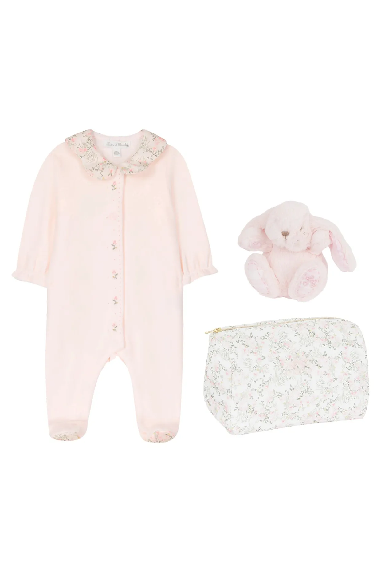 Ce coffret, issu de la ligne Jardin Hivernal, est une véritable ode à la tendresse pour une petite fille. Il se compose d’un pyjama en velours rose pâle, agrémenté de délicats détails imprimés fleuris, parfait pour des nuits douces et confortables. Le coffret comprend également une élégante trousse de toilette imprimée avec le motif fleuri jardin hivernal, idéale pour ranger les petits essentiels de bébé. Pour compléter cet ensemble, une adorable peluche Augustin, le lapin rose pâle, accompagne bébé dans ses moments de douceur. Un coffret charmant qui allie poésie et délicatesse, parfait pour les premiers jours.