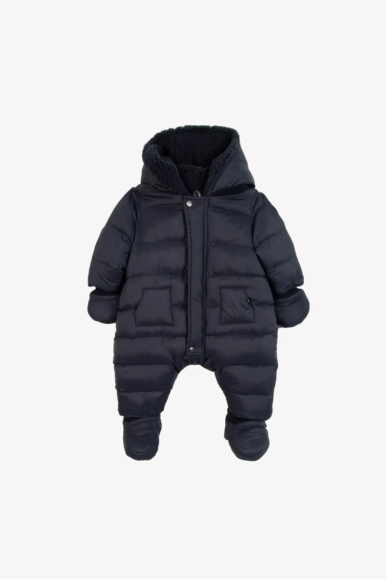 Ce pilote marine pour bébé garçon offre une protection optimale grâce à sa conception réversible. Côté déperlant, il fait barrage aux intempéries ; côté imitation fourrure, il enveloppe de chaleur et de douceur. Gants et chaussons inclus complètent ce cocon pensé pour affronter l’hiver avec élégance. Les chaussons ne sont pas inclus pour les tailles 18M et 2A.