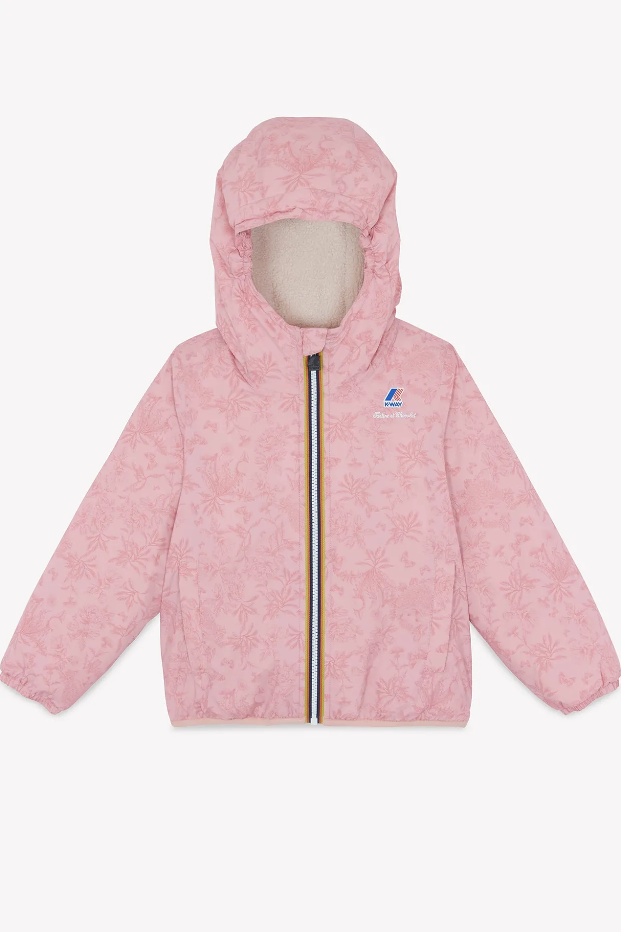 Tartine et Chocolat x K-Way® revisitent ensemble l’emblématique coupe-vent pour enfant avec un imprimé inspiration Toile de Jouy exclusif de couleur rose moyen. Un motif poétique et intemporel, inspiré de l’univers Tartine et Chocolat, pour une touche d’élégance en toute saison. Douceur, raffinement et protection au cœur de l’hiver, avec une doublure en polaire toute douce. Un indispensable pour affronter les journées fraîches avec style. Conçu dans le tissu technique 4.0 de K-way.