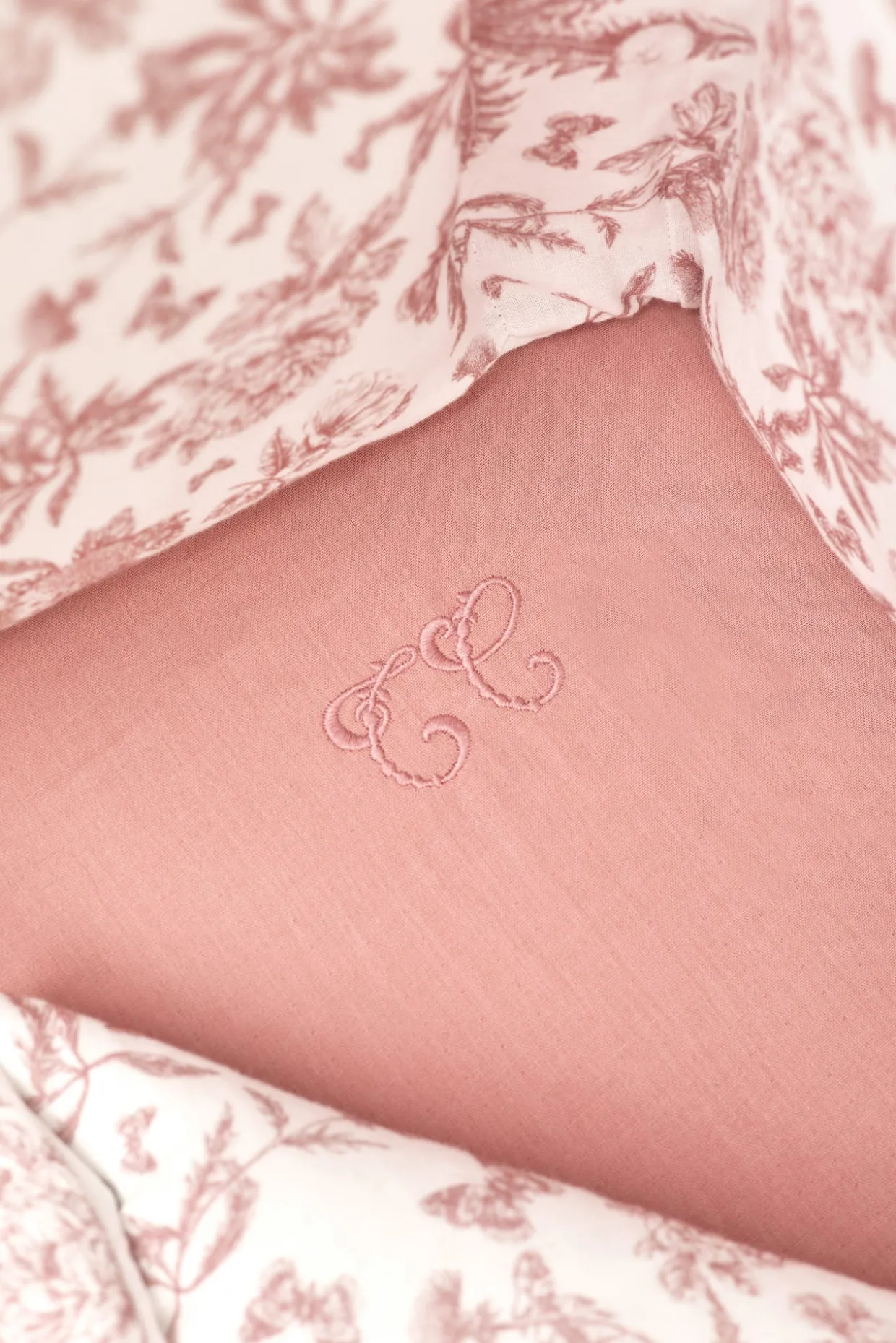 Drap housse imprimé inspiration Toile de Jouy rose dessiné par Tartine et Chocolat en coton lange. Dimensions : 70 x 140 cm Composition du tissu principal: 100% Coton.