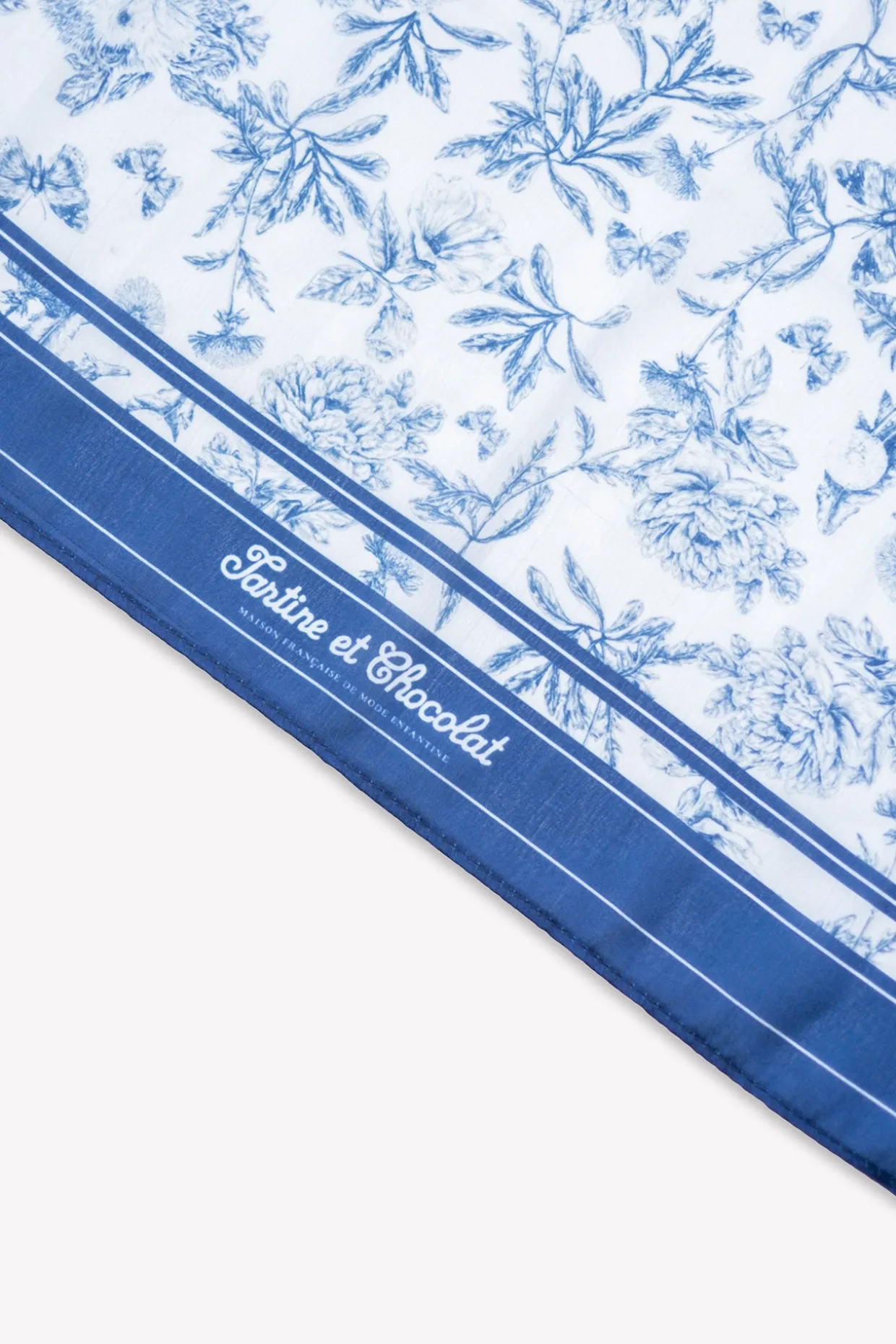 Ce joli foulard bleu Tartine et Chocolat, orné d’un délicat motif Toile de Jouy, évoque toute la douceur et le raffinement de la maison. Sa teinte tendre et intemporelle s’harmonise avec élégance à toutes les tenues, tandis que son format discret en fait un accessoire facile à nouer selon les envies : autour du cou, dans les cheveux ou en détail chic sur un sac. Un essentiel plein de charme pour rehausser chaque silhouette d’une touche poétique. Dimensions: 50x50cm.