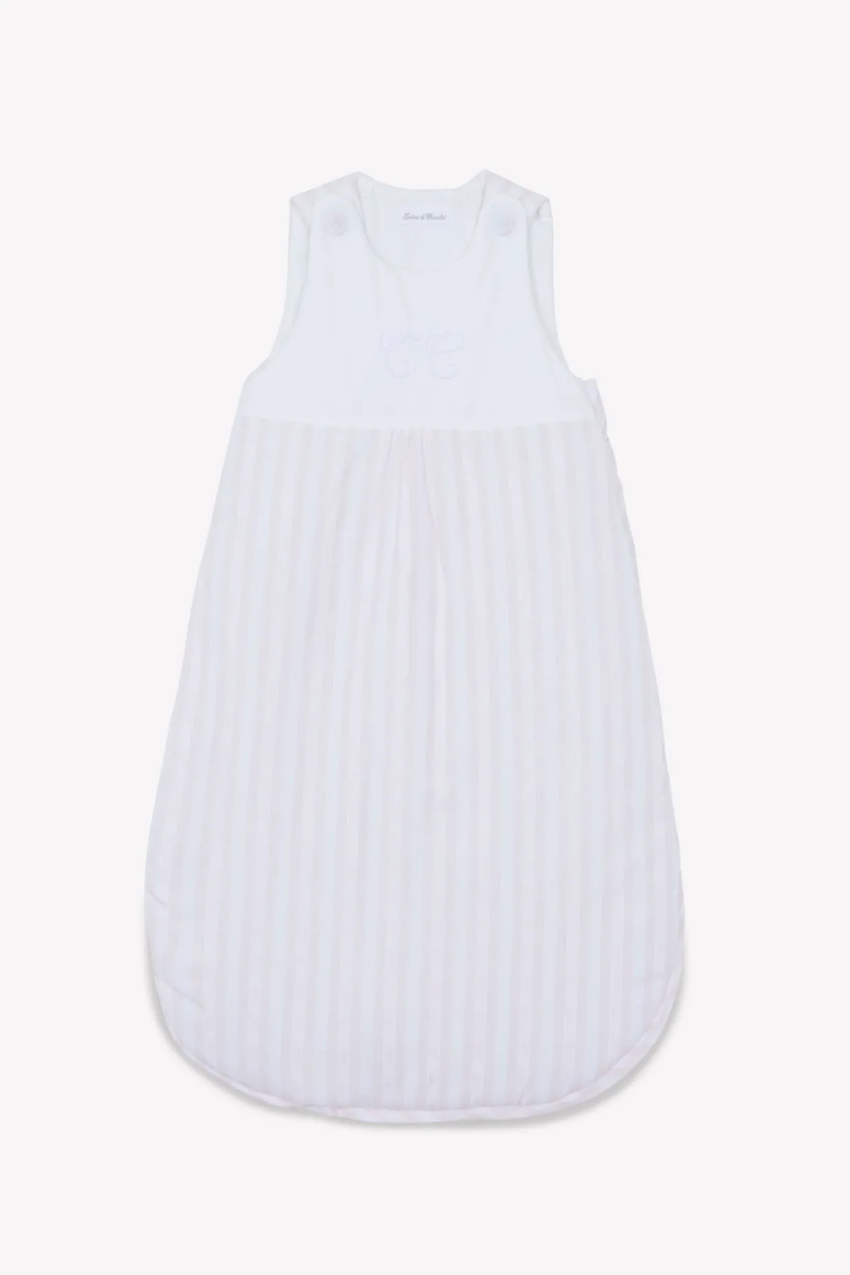 Gigoteuse Garda rose pâle, en popeline et coton piqué et fil à fil. Doublure en jersey. T1 – longueur 70 cm : 3 – 9 mois. La ligne Garda : Une ligne emblématique qui symbolise tout l’esprit Tartine et Chocolat. Des rayures chics et élégantes, associées aux couleurs pastel de l’enfance, monogramme TC finement brodé, des tissus doux et tendres.Gigoteuse TOG 2. Fabriqué au Portugal.