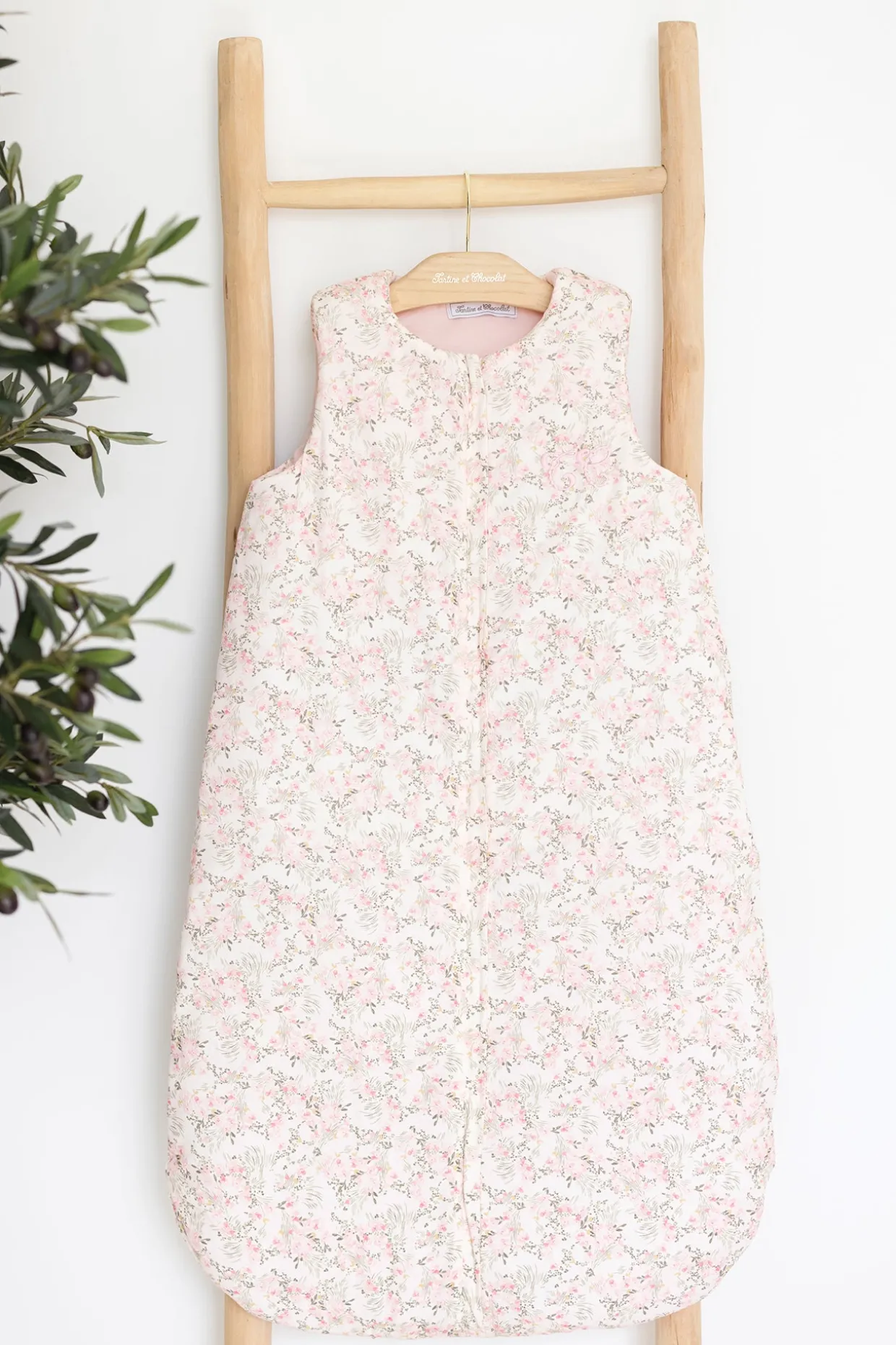 Gigoteuse imprimé fleuri inspiration Jardin Hivernal en coton lange avec ouverture sur le devant. Dimensions : 90 cm (de 1 à 2 ans). Nous préconisons une utilisation de nos gigoteuses dans une température de chambre entre 19 et 22 degrés.Gigoteuse TOG 2