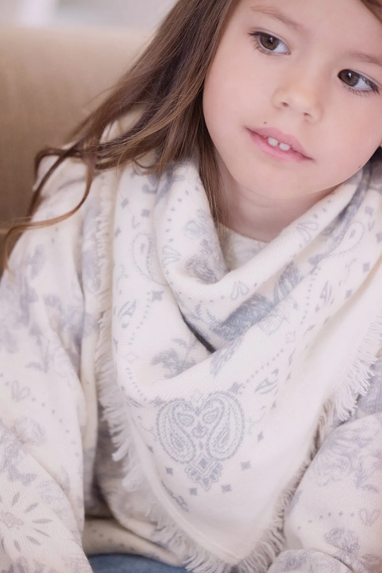 Une collaboration qui allie douceur et élégance ! Tartine et Chocolat s’associe à Kujten pour une collection en cachemire d’exception. Ce grand foulard en cachemire gris clair, orné d’un imprimé délicat, s’adapte à toutes vos envies. Sa teinte élégante et sa matière enveloppante en font un accessoire idéal pour rester bien au chaud avec une touche de sophistication.